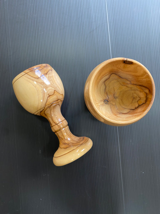 Olive Wood Hand Carved Artistic Chalice Made in Bethlehem .
