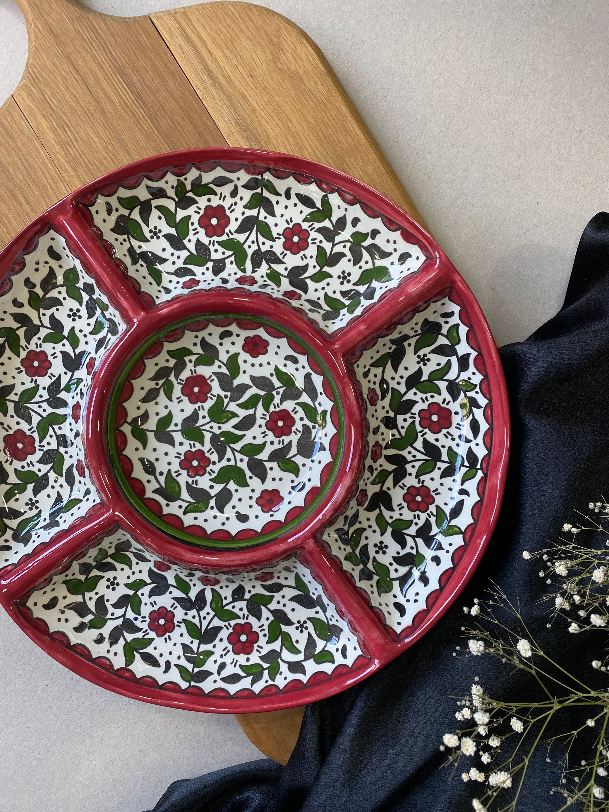 5 SECTION DIVIDED SERVING PLATTER - hebron ceramic