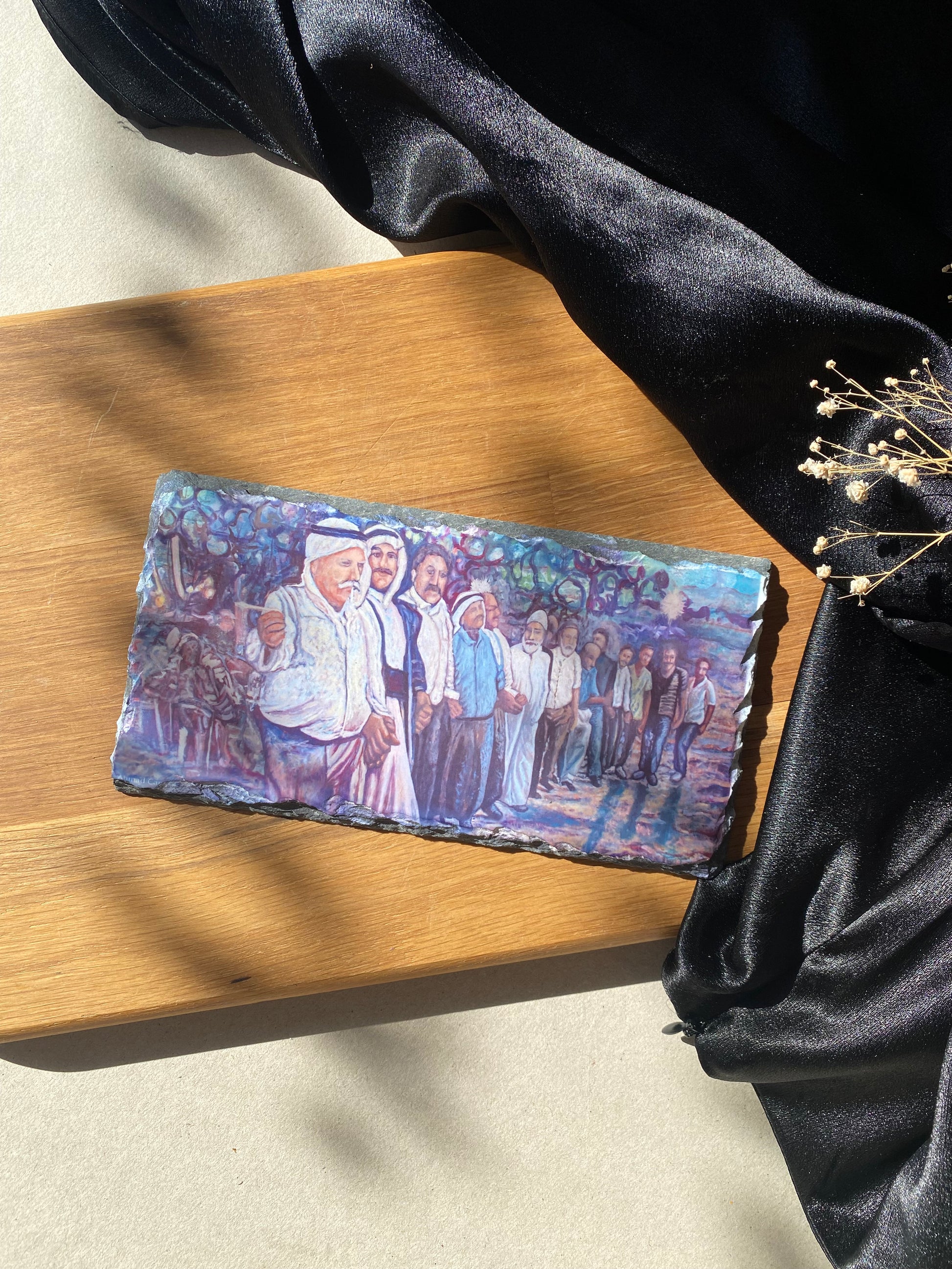 Ahmad Canaan is a prominent Palestinian artist known for blending motifs from the Palestinian collective experience with Islamic artistic traditions. A graduate of the Bezalel Academy of Art and Design, his work often features symbols like olive trees and the dabkeh dance, reflecting Palestinian heritage, alongside key and refugee motifs that address themes of displacement and trauma. Canaan’s art captures both intimate family moments and broader social narratives, portraying the essence of the Palestinian experience. He has exhibited widely in cities like Beirut, Dubai, London, and Tokyo, with his work featured in prestigious museums and private collections worldwide.