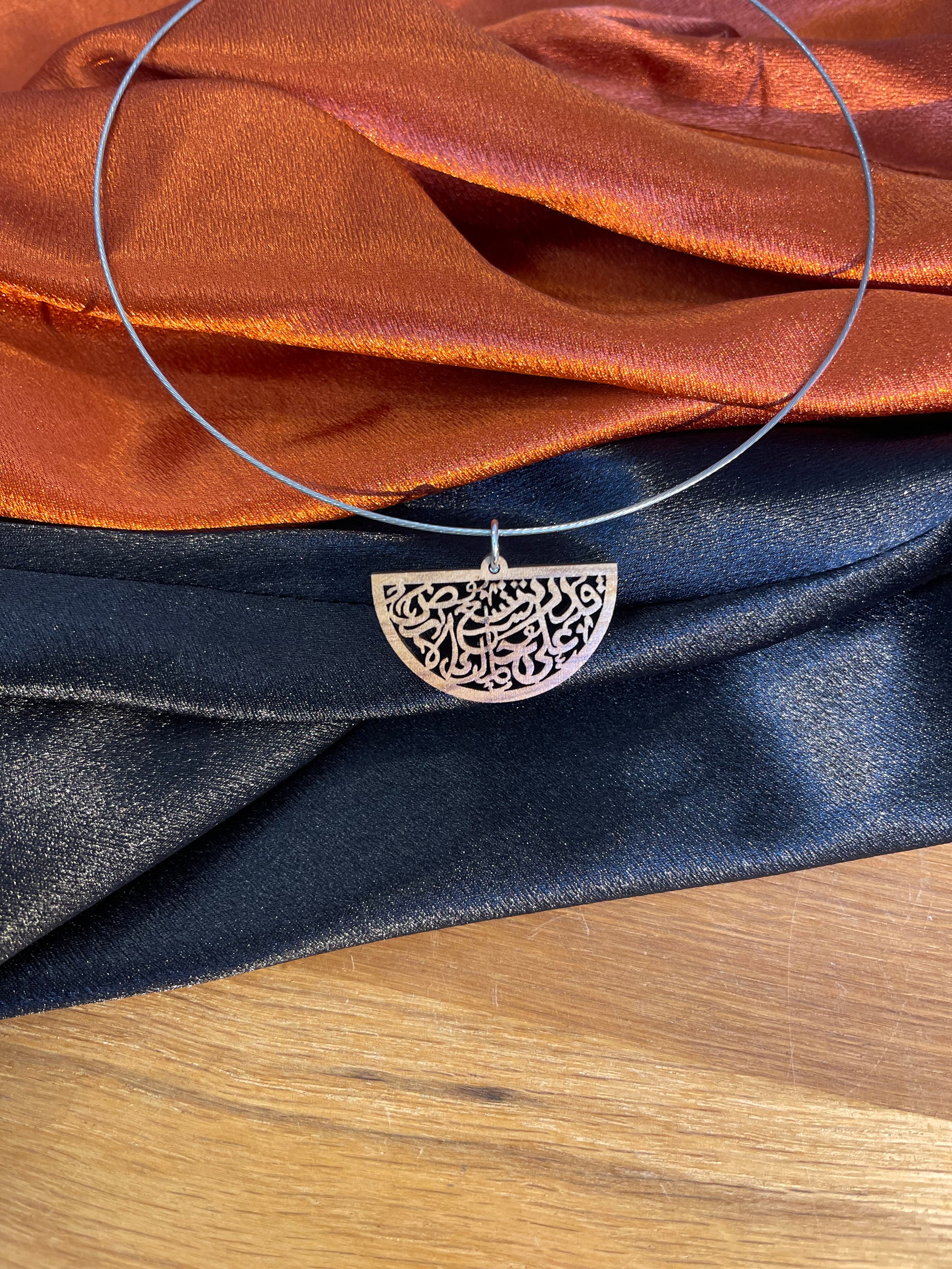 Beautiful light weight Arabic calligraphy olivewood necklace