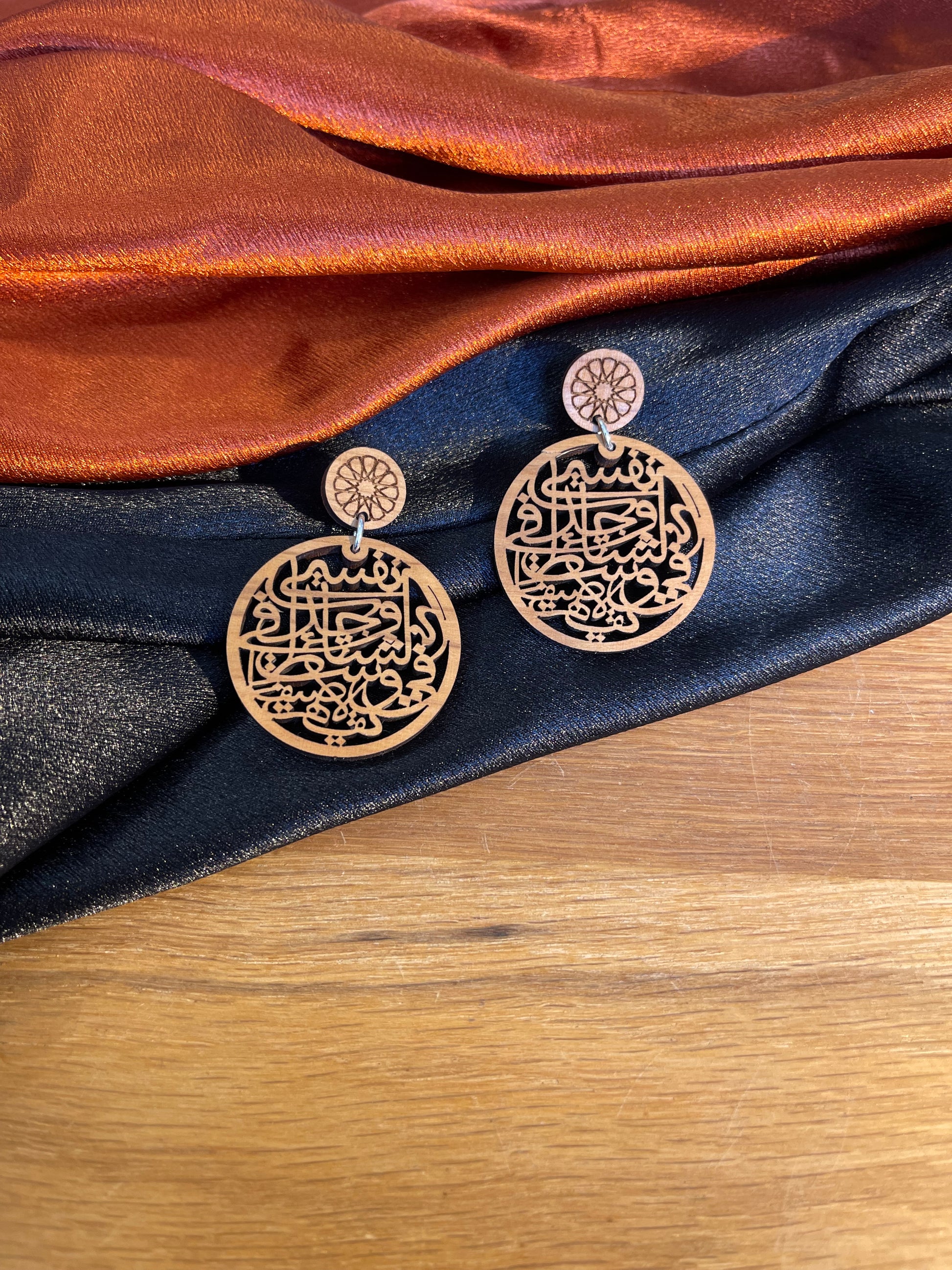 Beautiful light weight Arabic calligraphy olivewood earrings