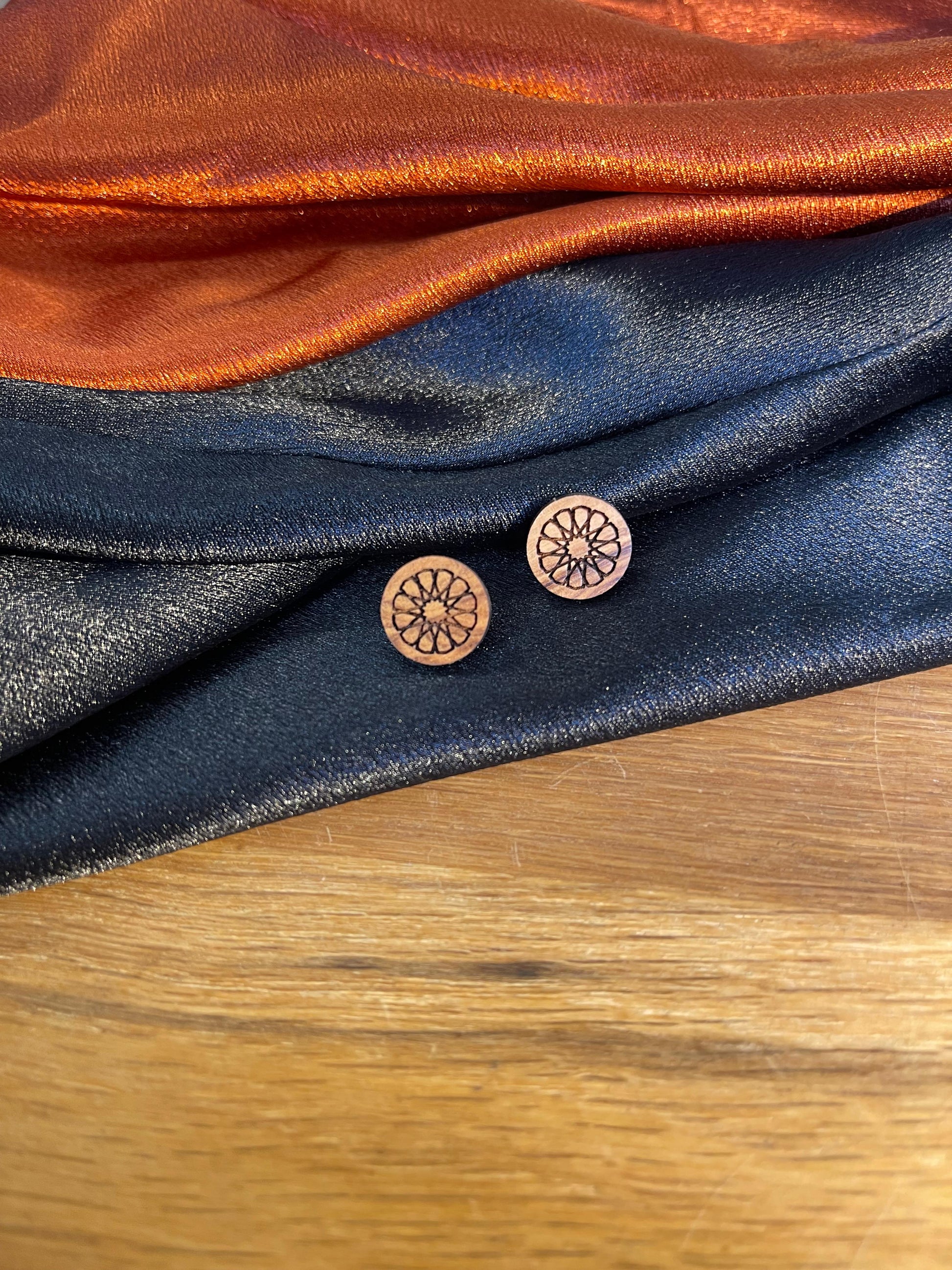 Beautiful light weight Arabic calligraphy olivewood earrings on