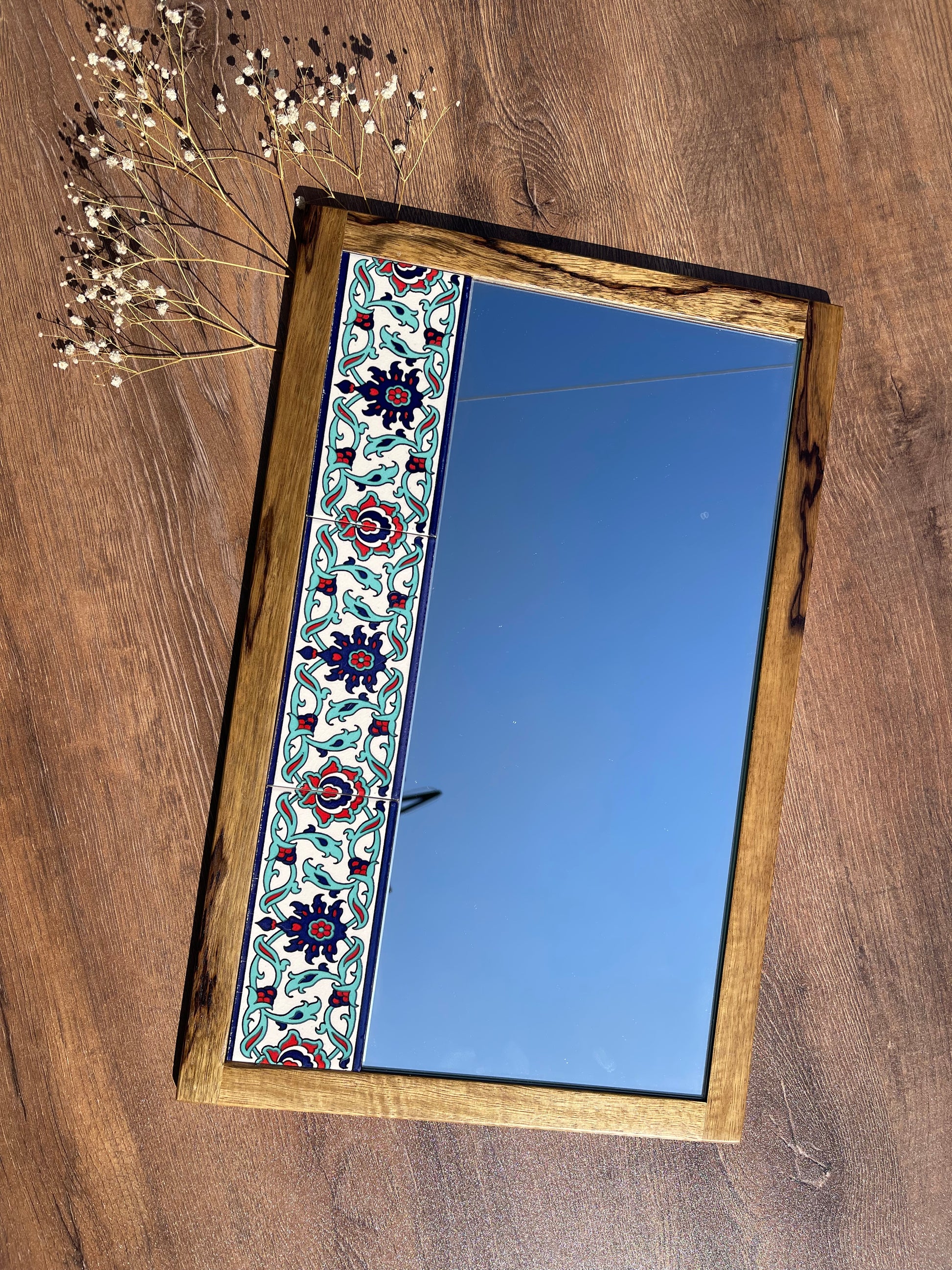 Elevate your space with our beautifully handcrafted mirrors, featuring traditional ceramic tiles along one edge. Each mirror is framed in natural olive wood, offering a warm contrast to the intricate blue and white floral tile pattern. Perfect for adding a touch of heritage and elegance to any room, these mirrors reflect your image and a piece of cultural artistry. Ideal for entryways, living rooms, or bedrooms, they bring functionality and a unique decorative statement to your home.