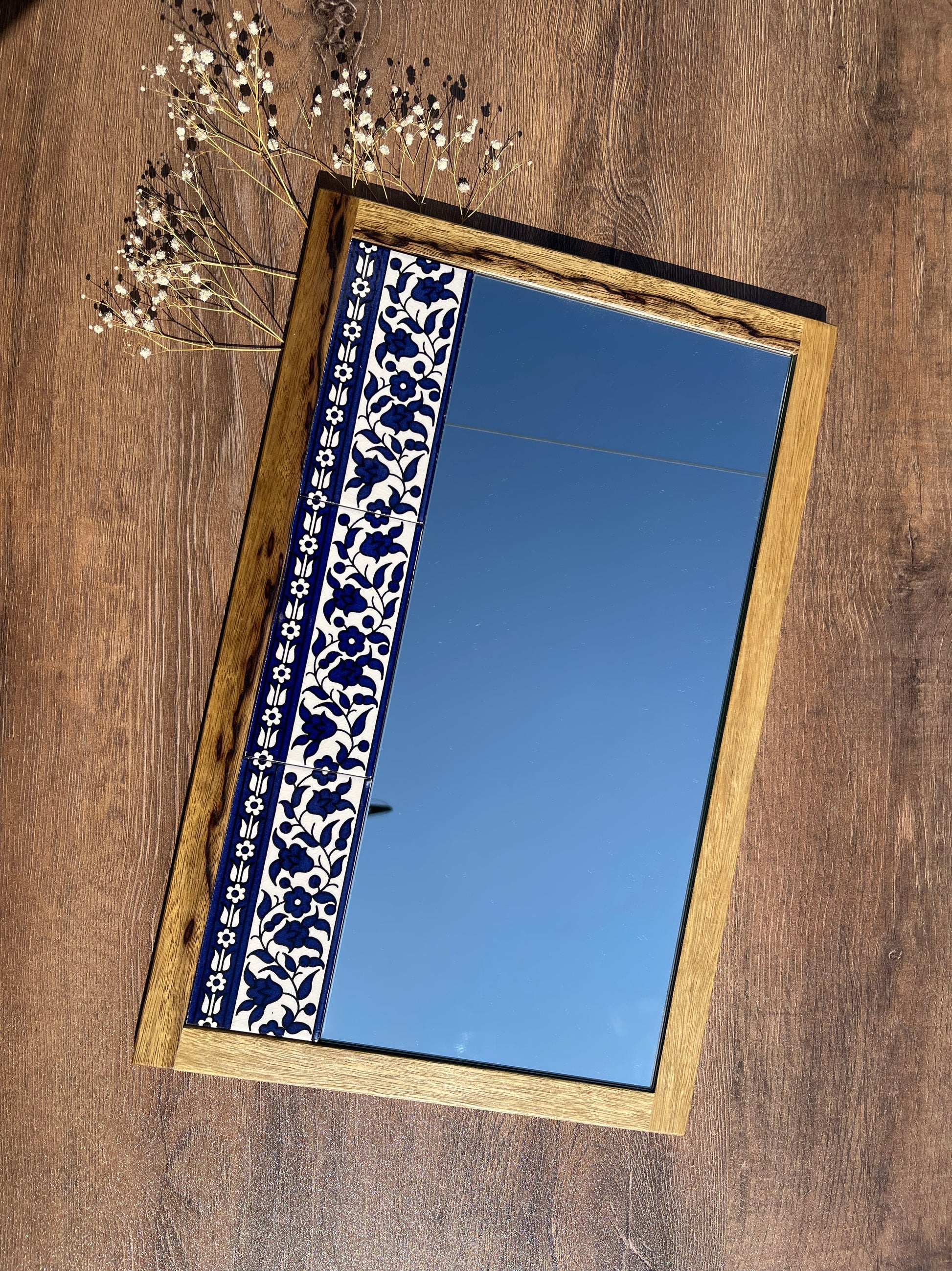 Elevate your space with our beautifully handcrafted mirrors, featuring traditional ceramic tiles along one edge. Each mirror is framed in natural olive wood, offering a warm contrast to the intricate blue and white floral tile pattern. Perfect for adding a touch of heritage and elegance to any room, these mirrors reflect your image and a piece of cultural artistry. Ideal for entryways, living rooms, or bedrooms, they bring functionality and a unique decorative statement to your home.