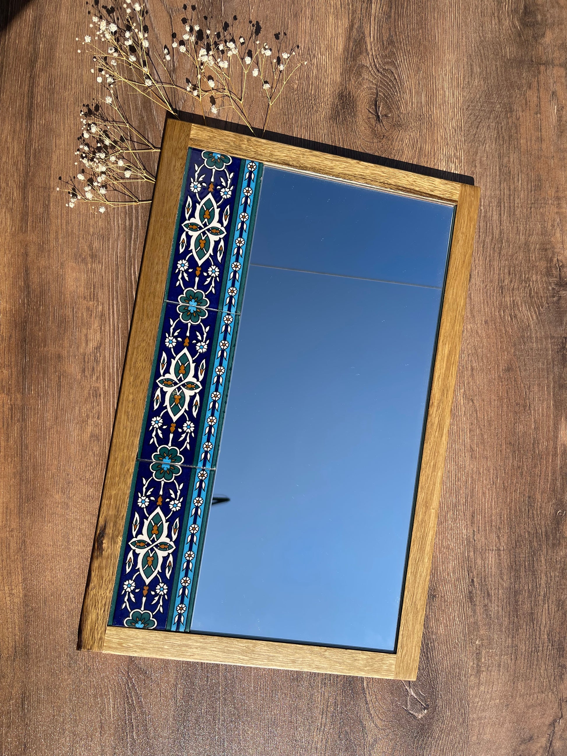 Elevate your space with our beautifully handcrafted mirrors, featuring traditional ceramic tiles along one edge. Each mirror is framed in natural olive wood, offering a warm contrast to the intricate blue and white floral tile pattern. Perfect for adding a touch of heritage and elegance to any room, these mirrors reflect your image and a piece of cultural artistry. Ideal for entryways, living rooms, or bedrooms, they bring functionality and a unique decorative statement to your home.