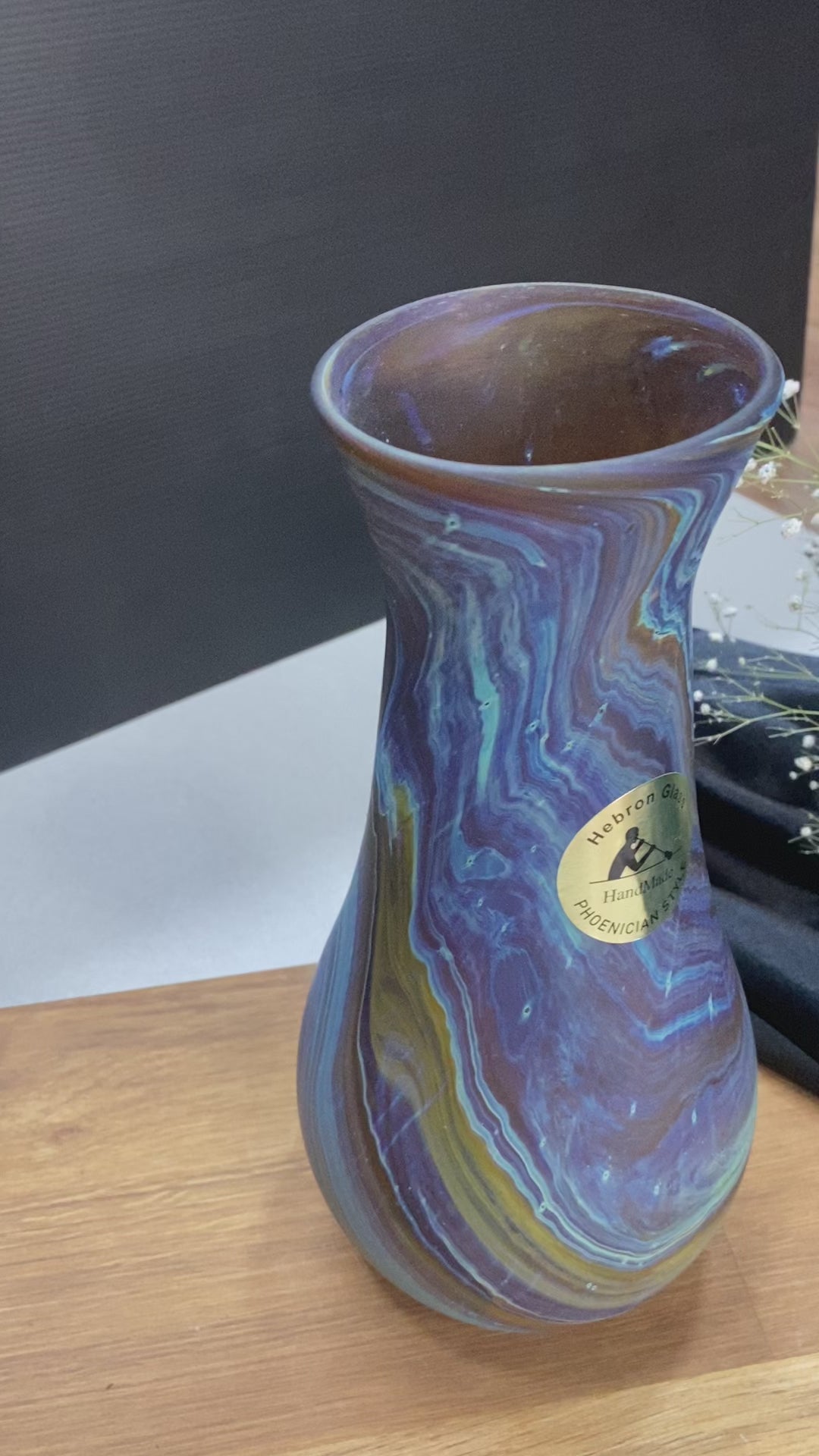 This glass made carefully from swirling Phoenician glass by artisans of Hebron Glass & Ceramic Factory.