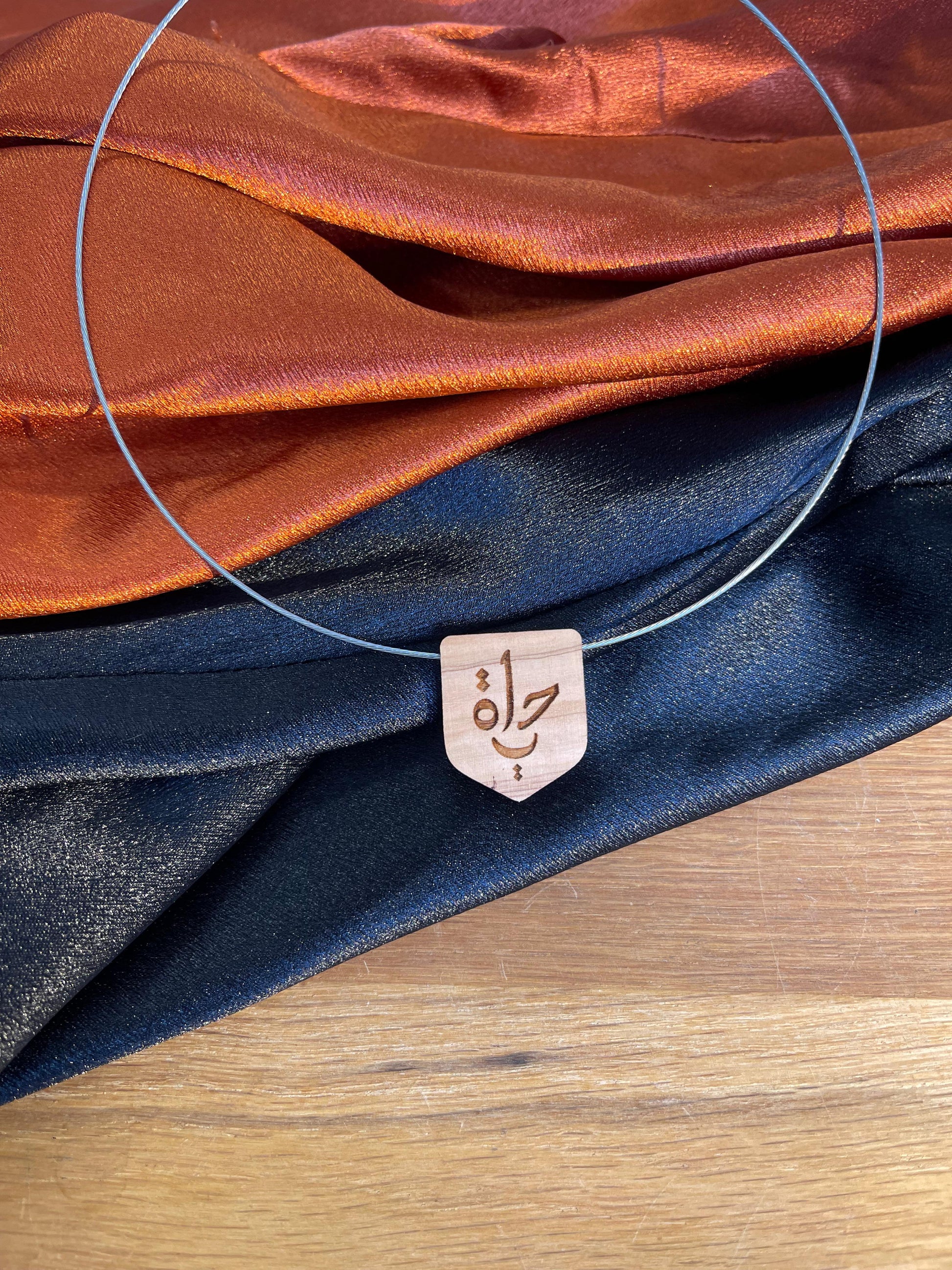 Beautiful light weight Arabic calligraphy olivewood necklace