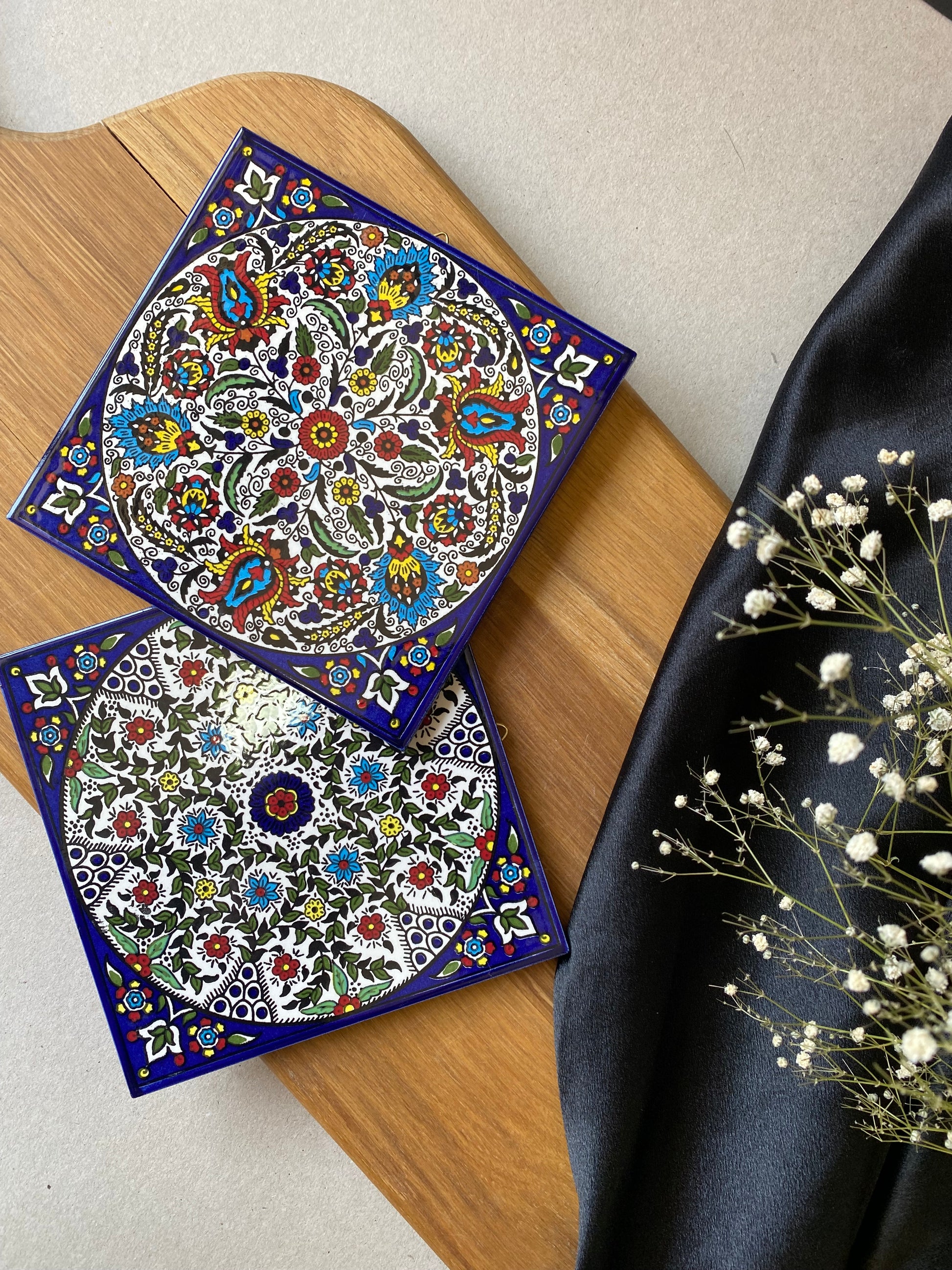 Handmade ceramic tiles from Hebron are renowned for their intricate designs and craftsmanship. Crafted using traditional techniques, these tiles often feature unique patterns and vibrant colors that reflect the region's rich cultural heritage. Each tile is individually made, showcasing the artisanal skill and attention to detail of Hebron’s artisans.