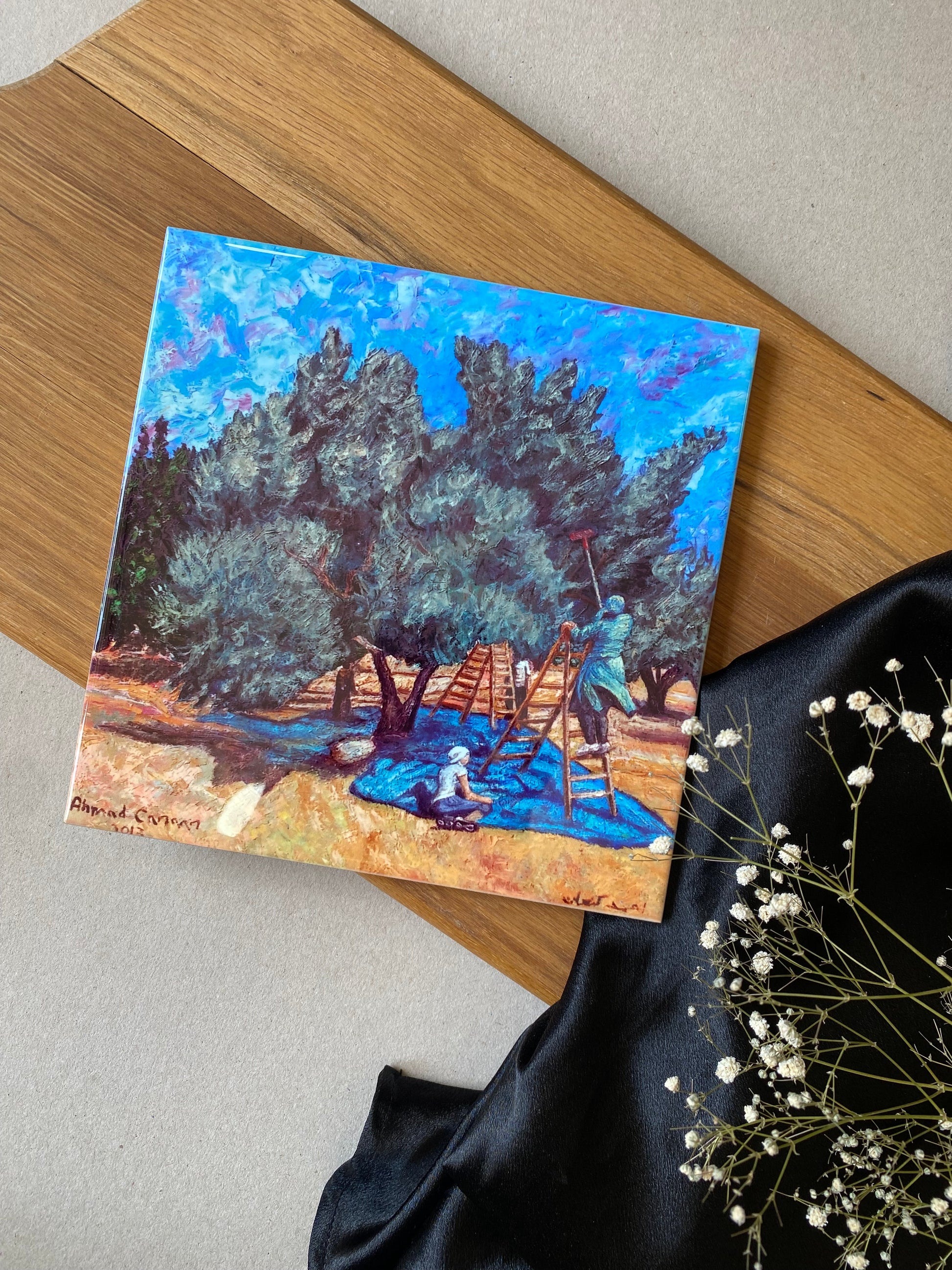 Olives Harvest Porcelain Original Art Work By Ahmad Cinaan