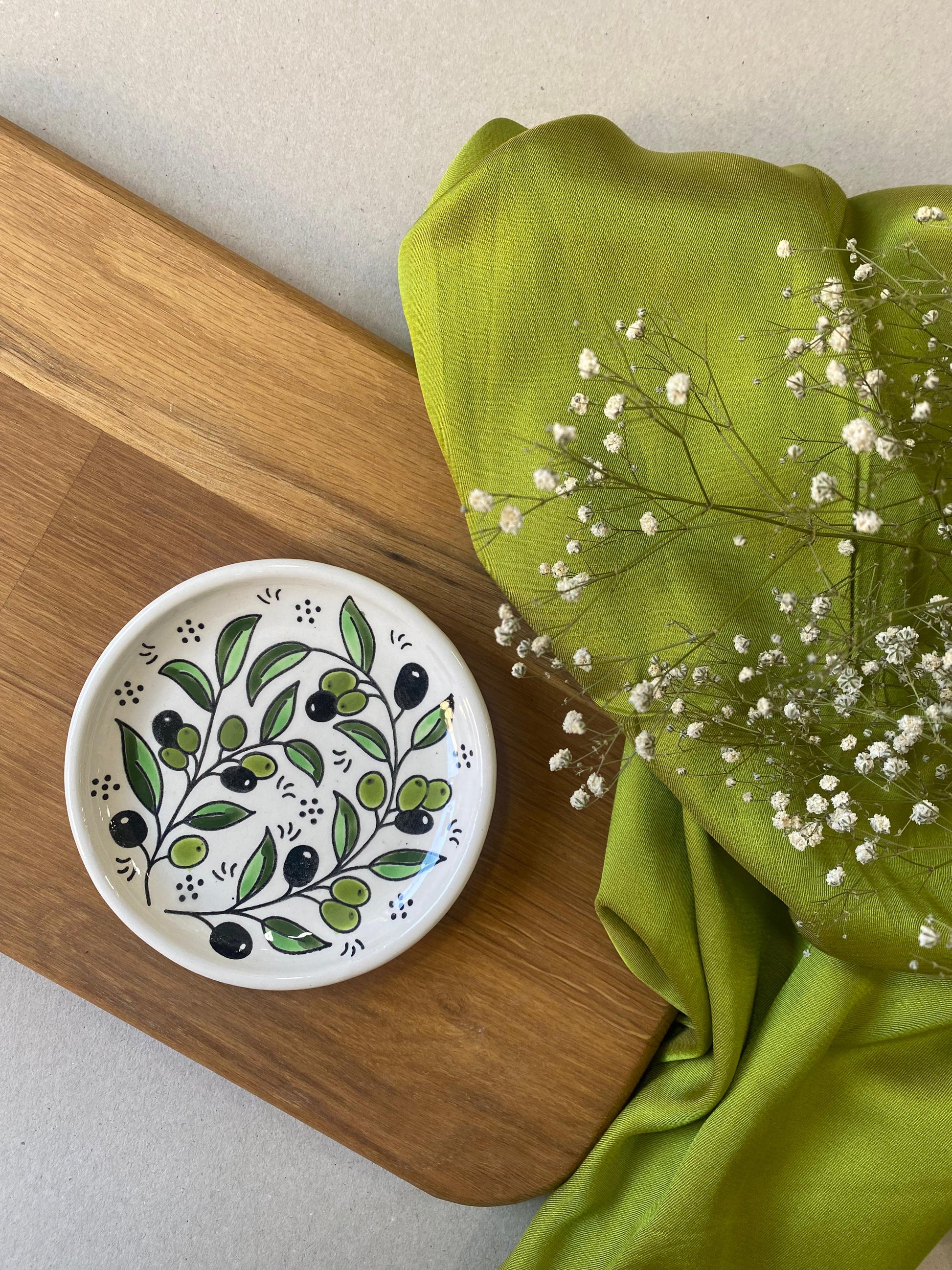 Add some charm to your table with this beautiful ceramic plate featuring a classic olive design. Handmade in Hebron, it’s perfect for both serving and showcasing.