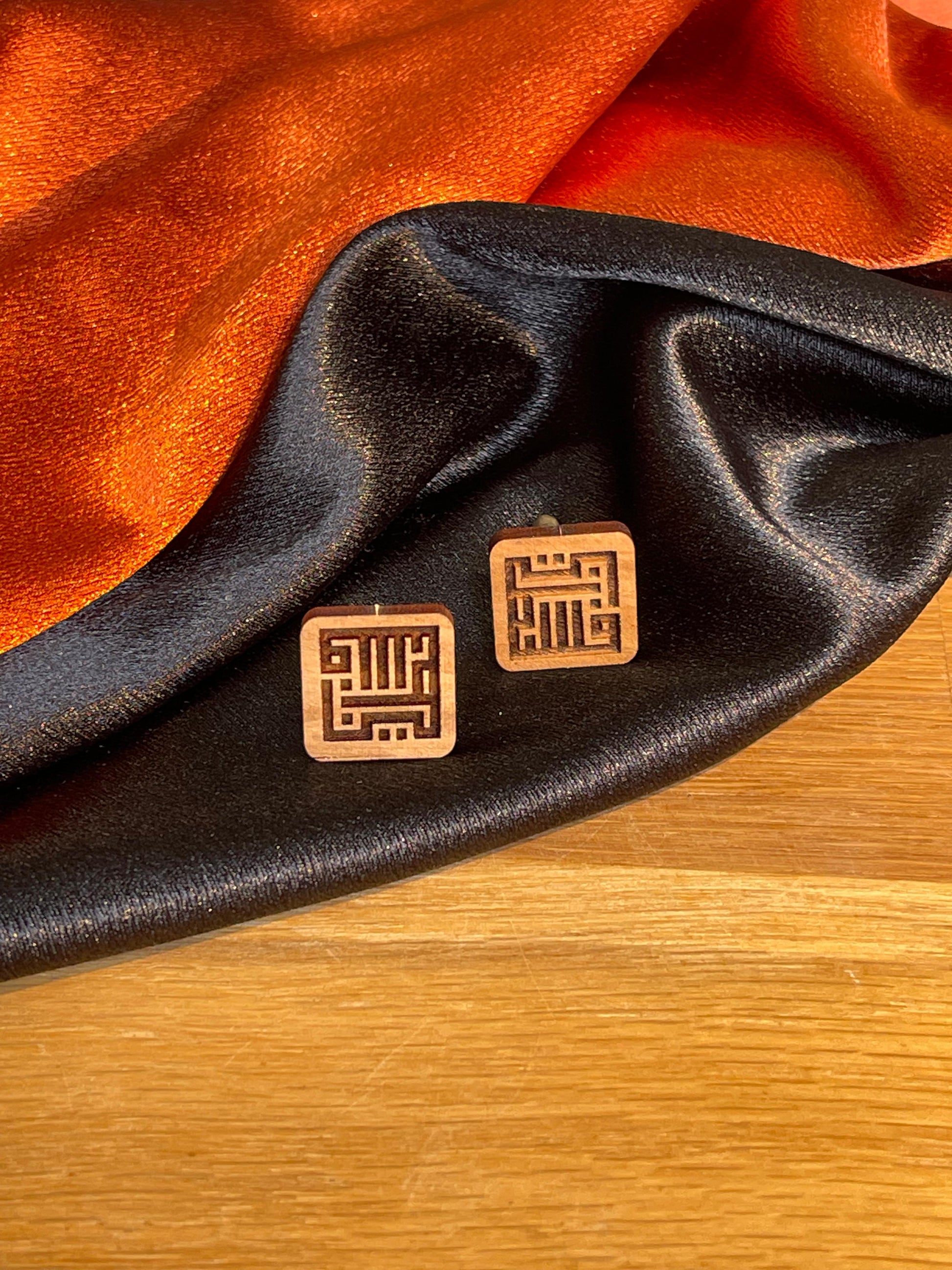 Beautiful light weight Arabic calligraphy olivewood earrings on