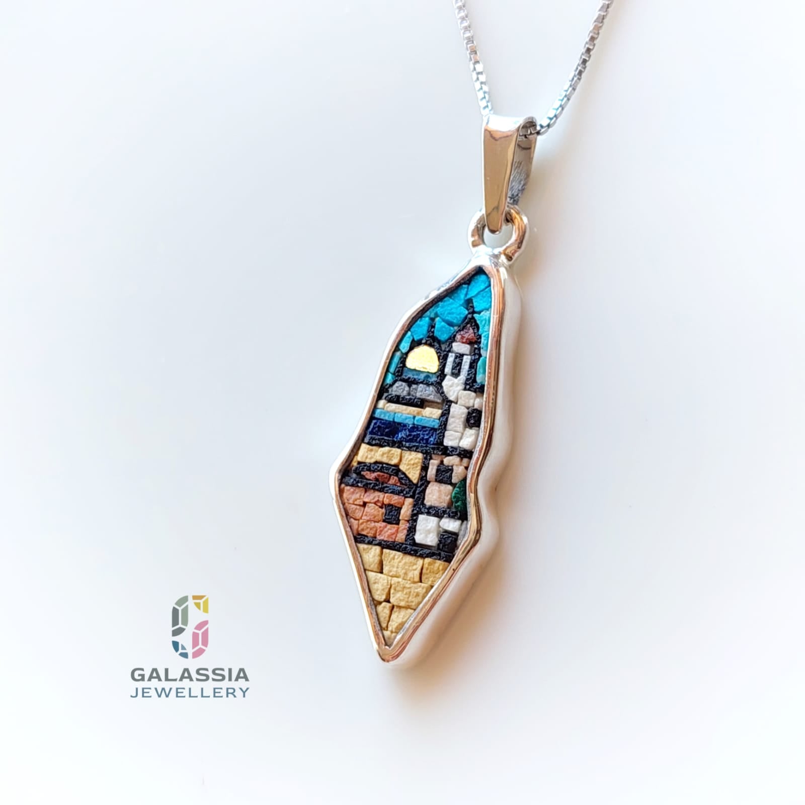 Pali Map with Dome of The Rock Necklace- Galassia Jewelery