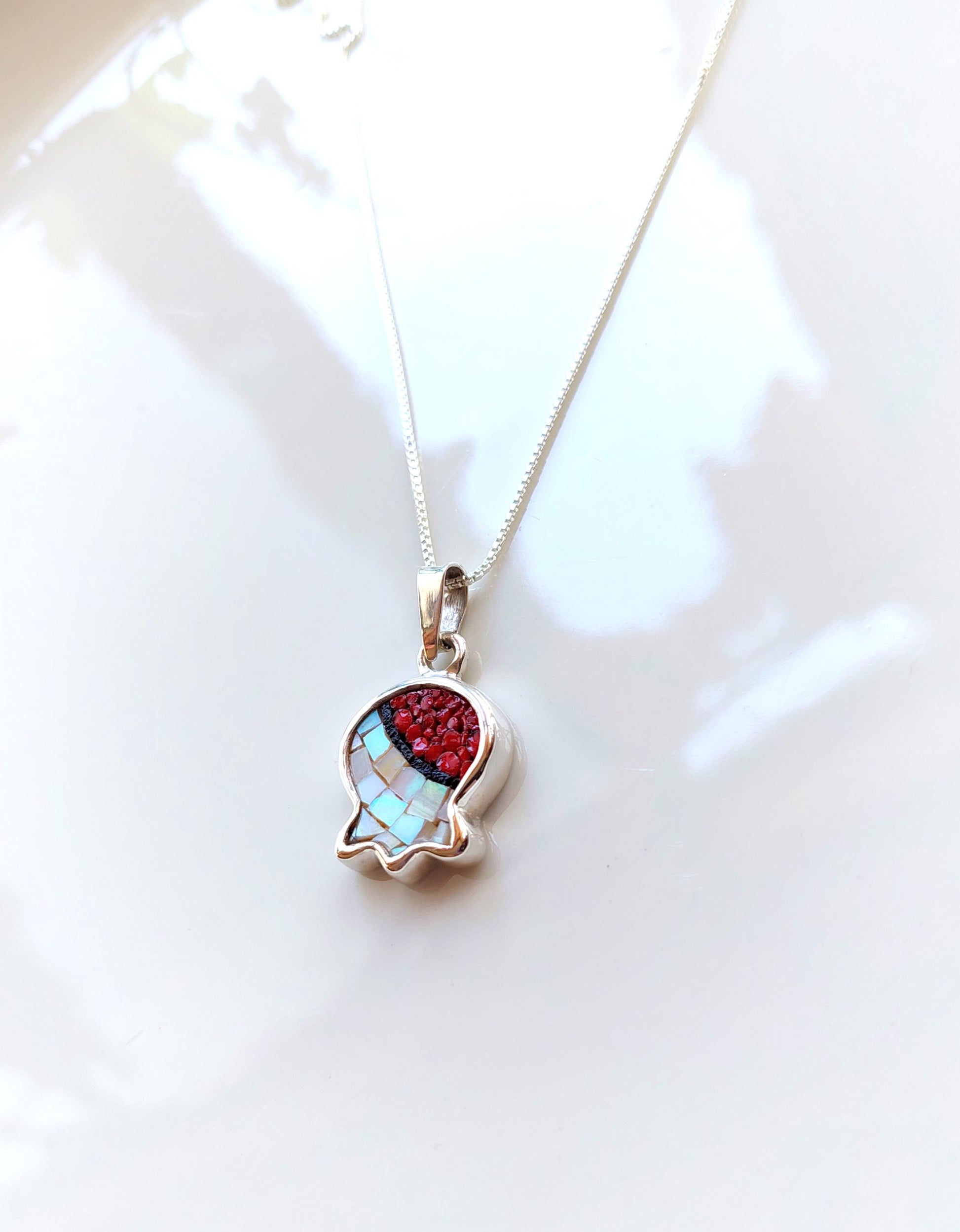 The pomegranate was associated with the daily and economic life of the ancient people of Palestine. It was known as a symbol of rebirth and fertility and was often used on ancient mosaic floors.