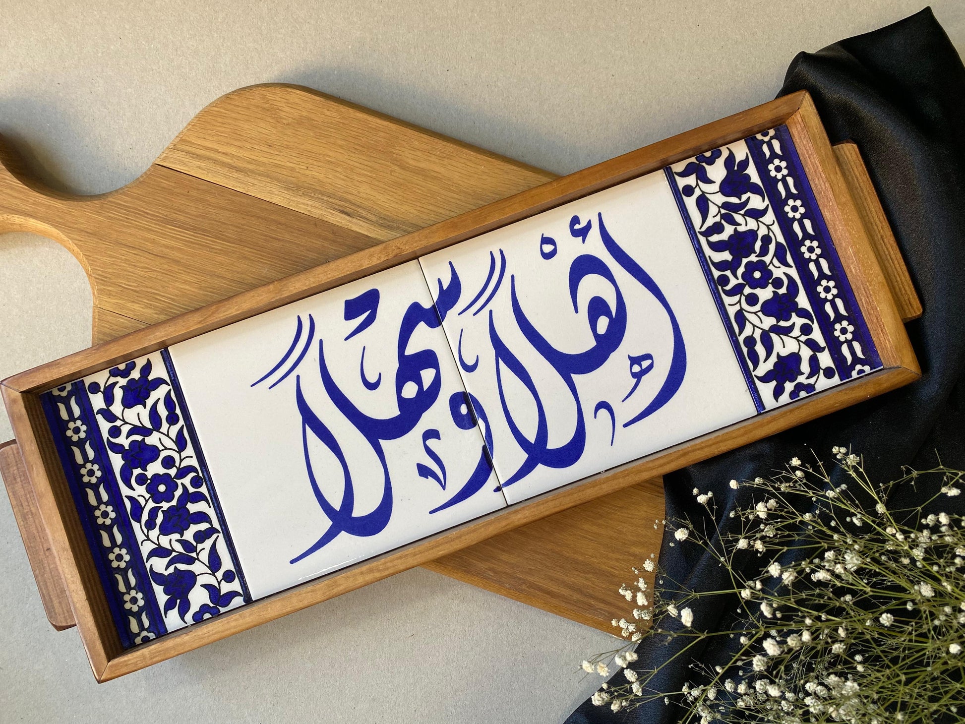 “Ahlan wa Sahlan” WOODEN Ceramic 2 PC TILE TRAY