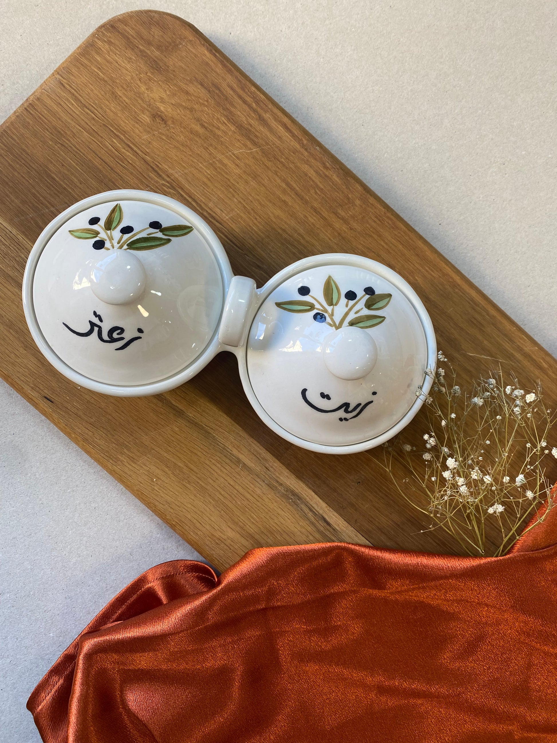 Zaatar and Olive Oil Ceramic Double Dish Set