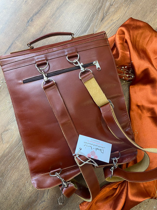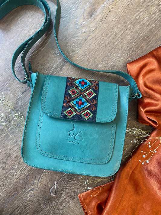 Brown Leather Travel Bag with Bold Tatreez Pattern