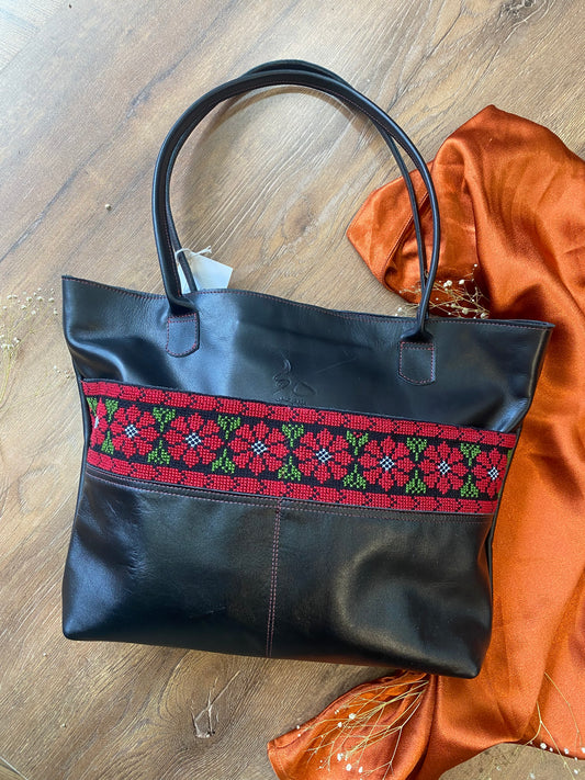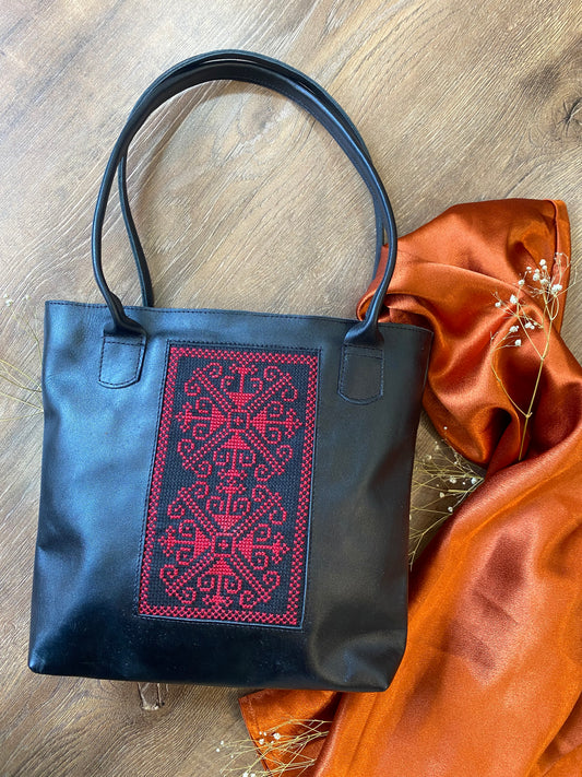 "Sitti Haifa" Tatreez Leather Tote-Bag