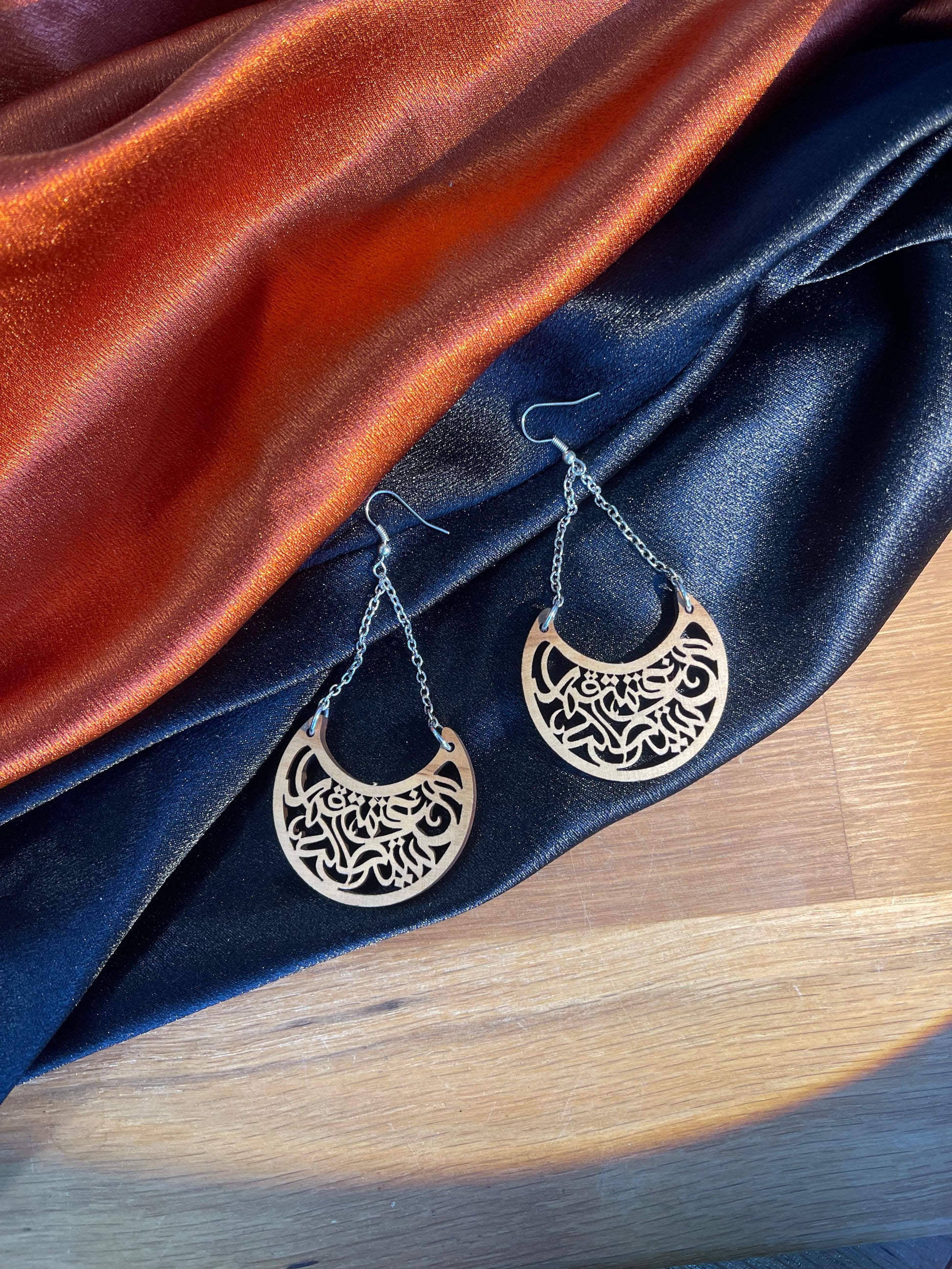 Beautiful light weight Arabic calligraphy olivewood earrings