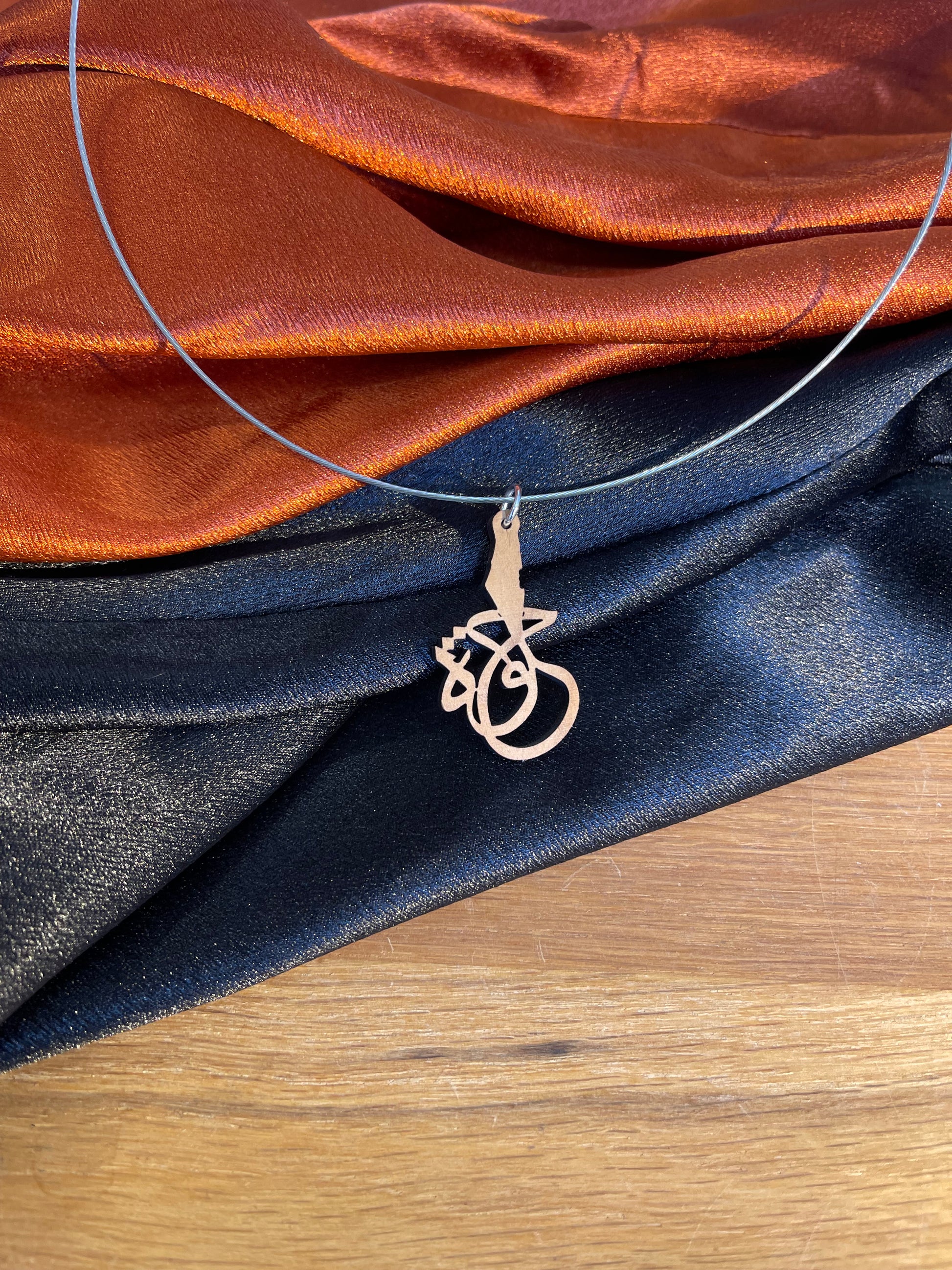 Beautiful light weight Arabic calligraphy olivewood necklace