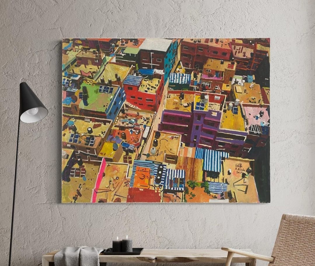 His artistic footprint extends to Spain, Norway, Jordan, and Palestine, where he has created paintings and murals reflecting diverse themes such as life, beauty, the future, community, and freedom. These works were particularly significant in the Jordan Valley, Bil’in, and France. Between 2015 and 2018, Albaba embarked on a notable project titled "The Fish Path." Starting from Nabi Saleh Village and extending to the Al Amari Refugee Camp, he created 18 murals across Palestine, Lebanon, and Jordan. These murals featured fishes as a symbol of refugees, drawing inspiration from reality. Albaba also initiated "The Camp '' project, an introspective exploration of his relationship with the refugee camp, capturing its essence and his interpretation through horizontal architecture. This project led to the creation of 15 paintings. His exhibition portfolio is extensive, with recent two participations in 2019 in Holland and in Qattan Foundation at the same period.