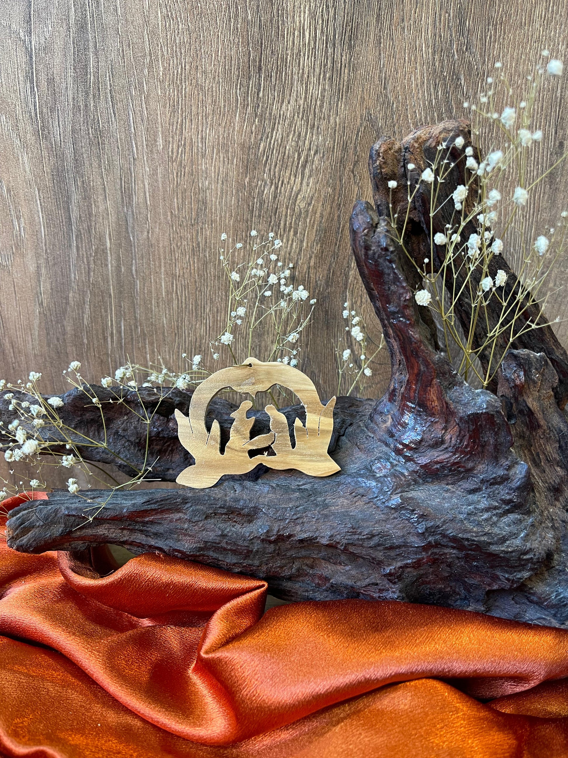 This Handmade Wooden Family Ornament from Bethlehem, Palestine, is a beautiful and meaningful keepsake that celebrates the spirit of family and togetherness. Crafted by skilled artisans in the heart of the Holy Land, each ornament is meticulously carved by hand from high-quality olive wood, showcasing intricate designs that reflect both the region's rich cultural heritage and the warmth of familial bonds.