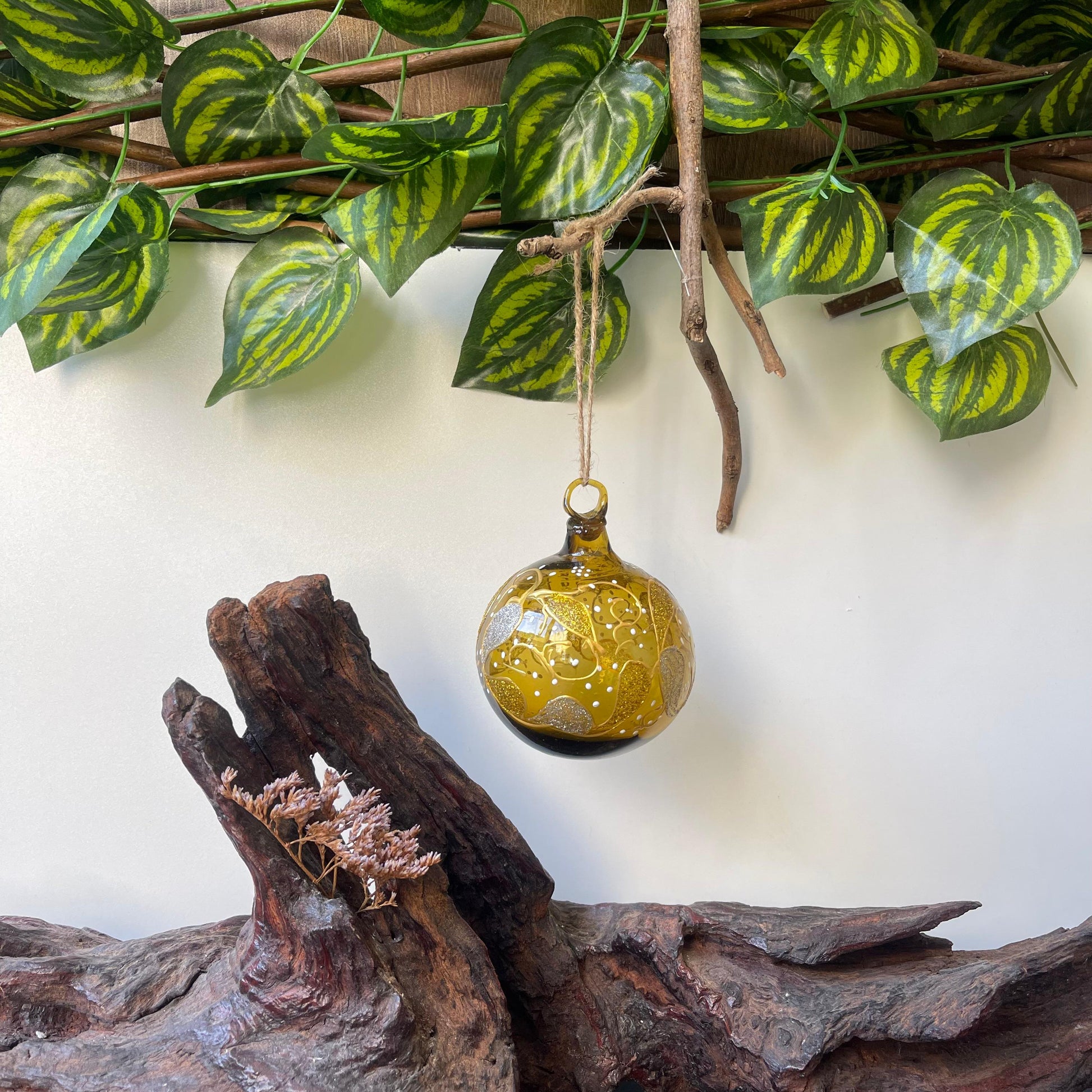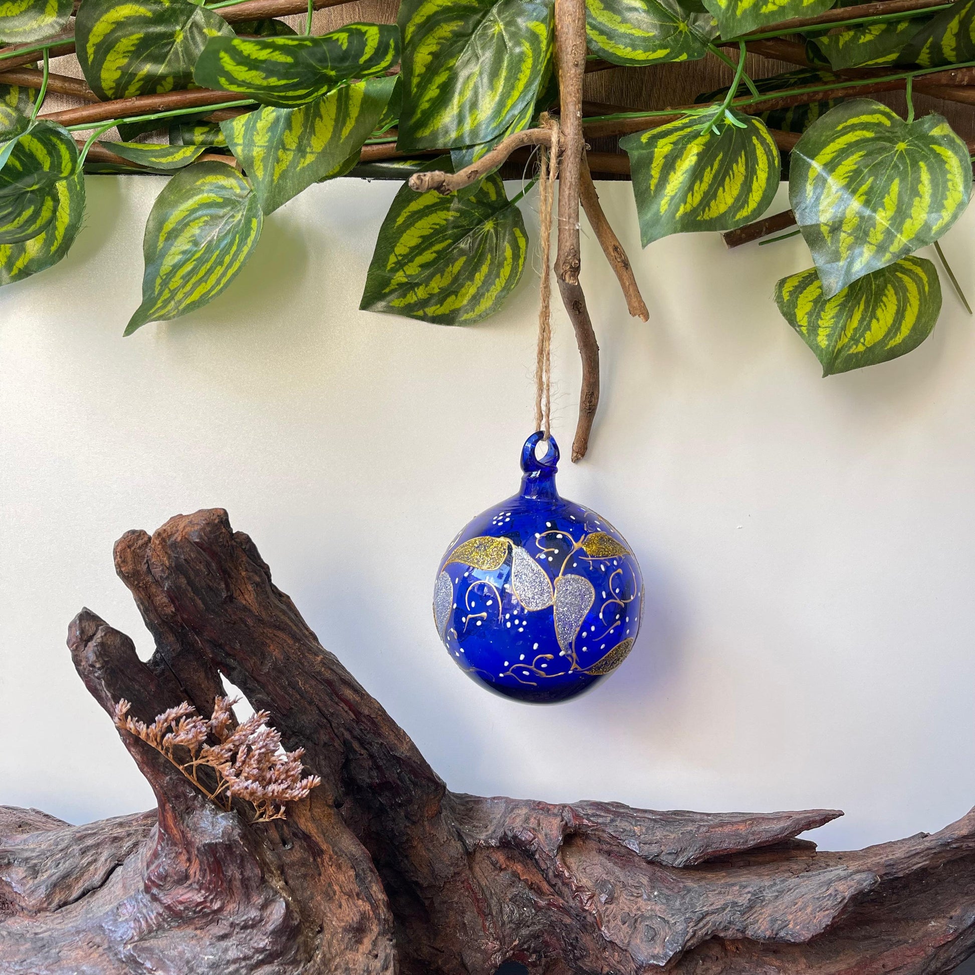 This handcrafted Hebron blown glass bauble is perfect for indoor and outdoor decor. Hebron glass is a centuries-old Palestinian craft, renowned for its vibrant colors and intricate designs. Hand-blown by skilled artisans in Hebron, each piece reflects a rich cultural heritage passed down through generations. Using recycled glass and traditional techniques, Hebron Glass is celebrated for its beauty and craftsmanship, offering a unique blend of artistry and sustainability. From decorative vases to everyday glassware, these handmade items embody the spirit of Palestinian resilience and creativity.