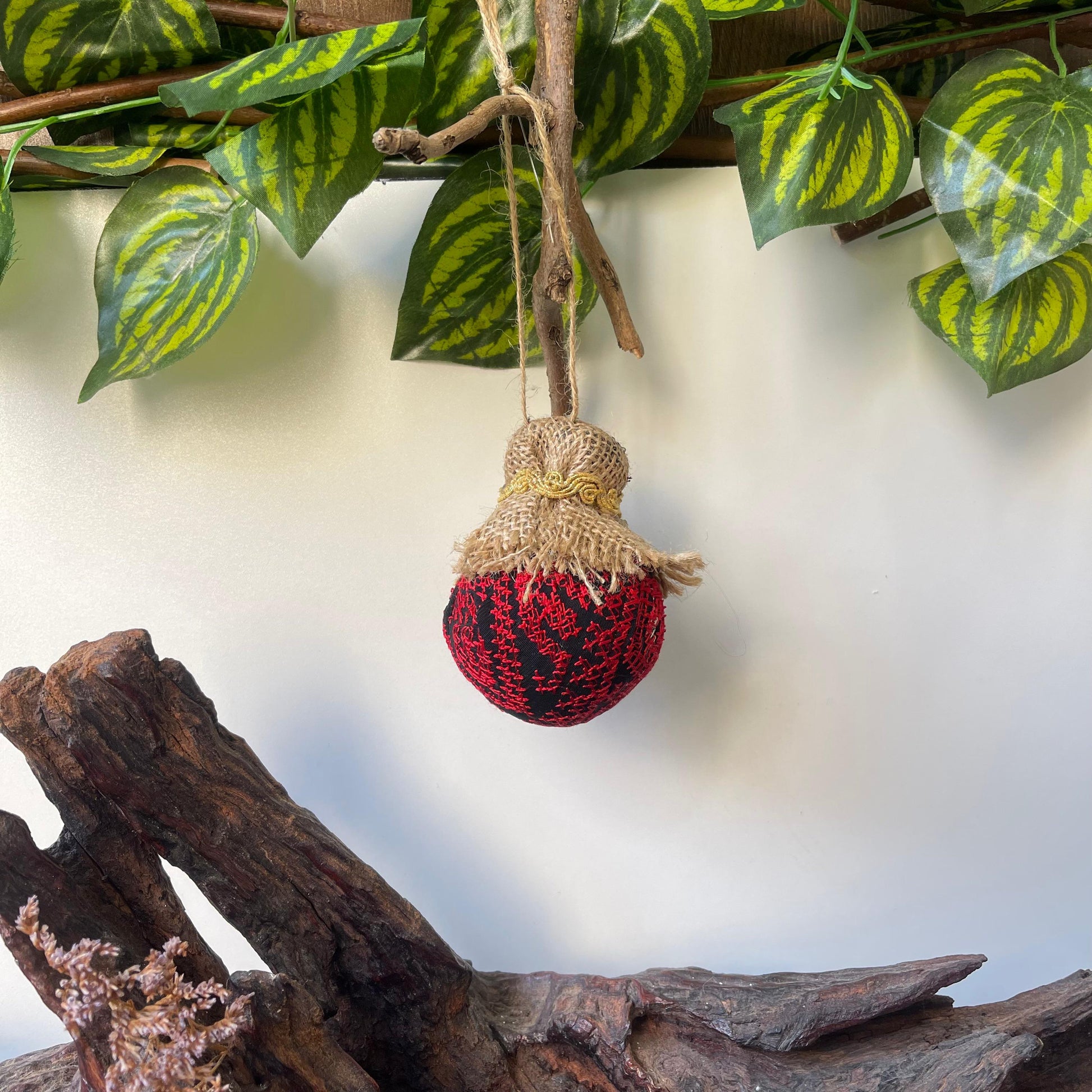 Introducing a one-of-a-kind Christmas ornament collection that weaves together the rich tapestry of Palestinian heritage – the "Recycled Fabric Fusion." Each ornament in this extraordinary collection is crafted from a medley of recycled fabrics, including fragments of old dresses, the iconic kuffiyeh, and the vibrant patterns of Bedouin textiles.