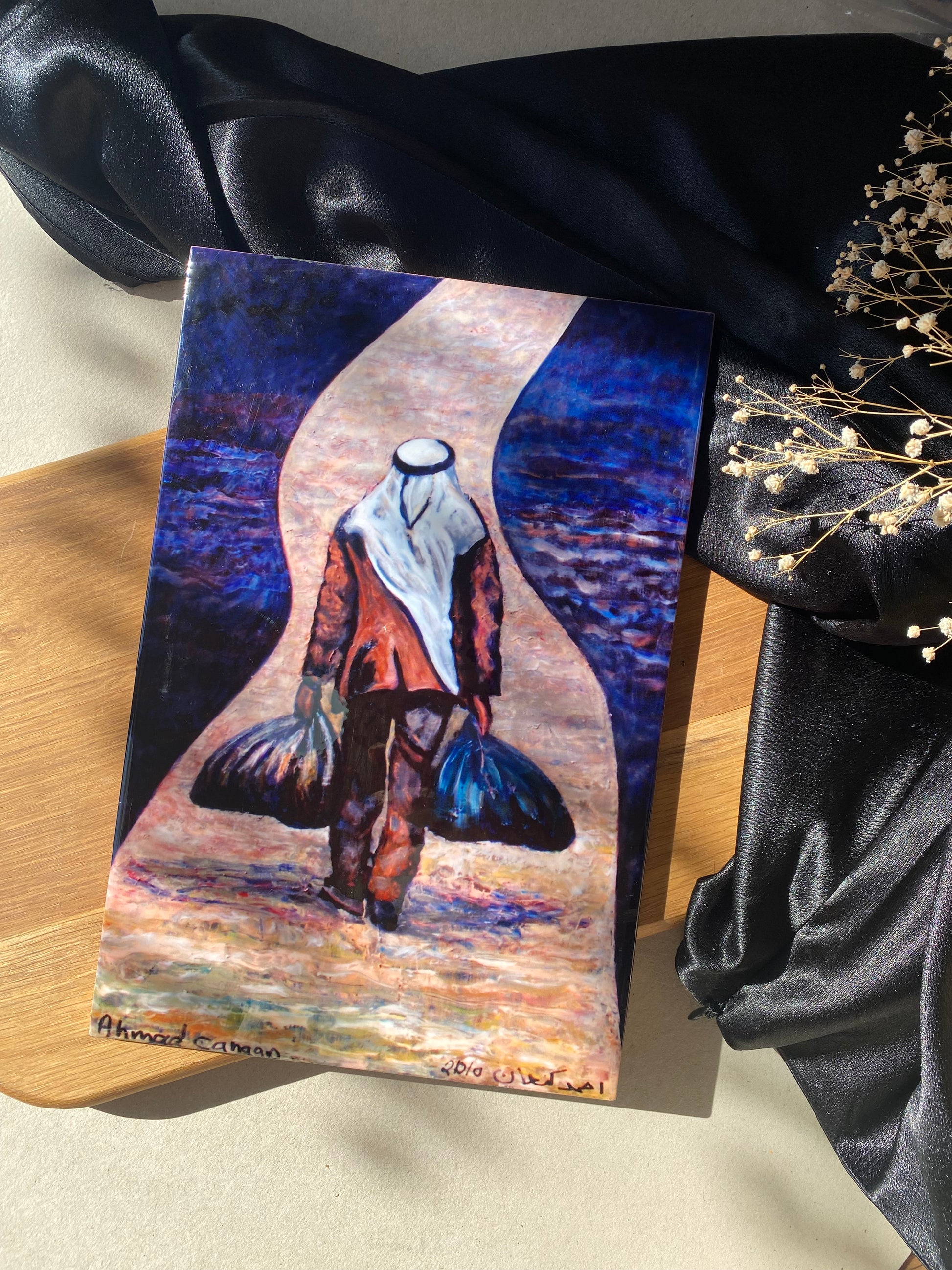 Ahmad Canaan is a prominent Palestinian artist known for blending motifs from the Palestinian collective experience with Islamic artistic traditions. A graduate of the Bezalel Academy of Art and Design, his work often features symbols like olive trees and the dabkeh dance, reflecting Palestinian heritage, alongside key and refugee motifs that address themes of displacement and trauma. Canaan’s art captures both intimate family moments and broader social narratives, portraying the essence of the Palestinian experience. He has exhibited widely in cities like Beirut, Dubai, London, and Tokyo, with his work featured in prestigious museums and private collections worldwide.