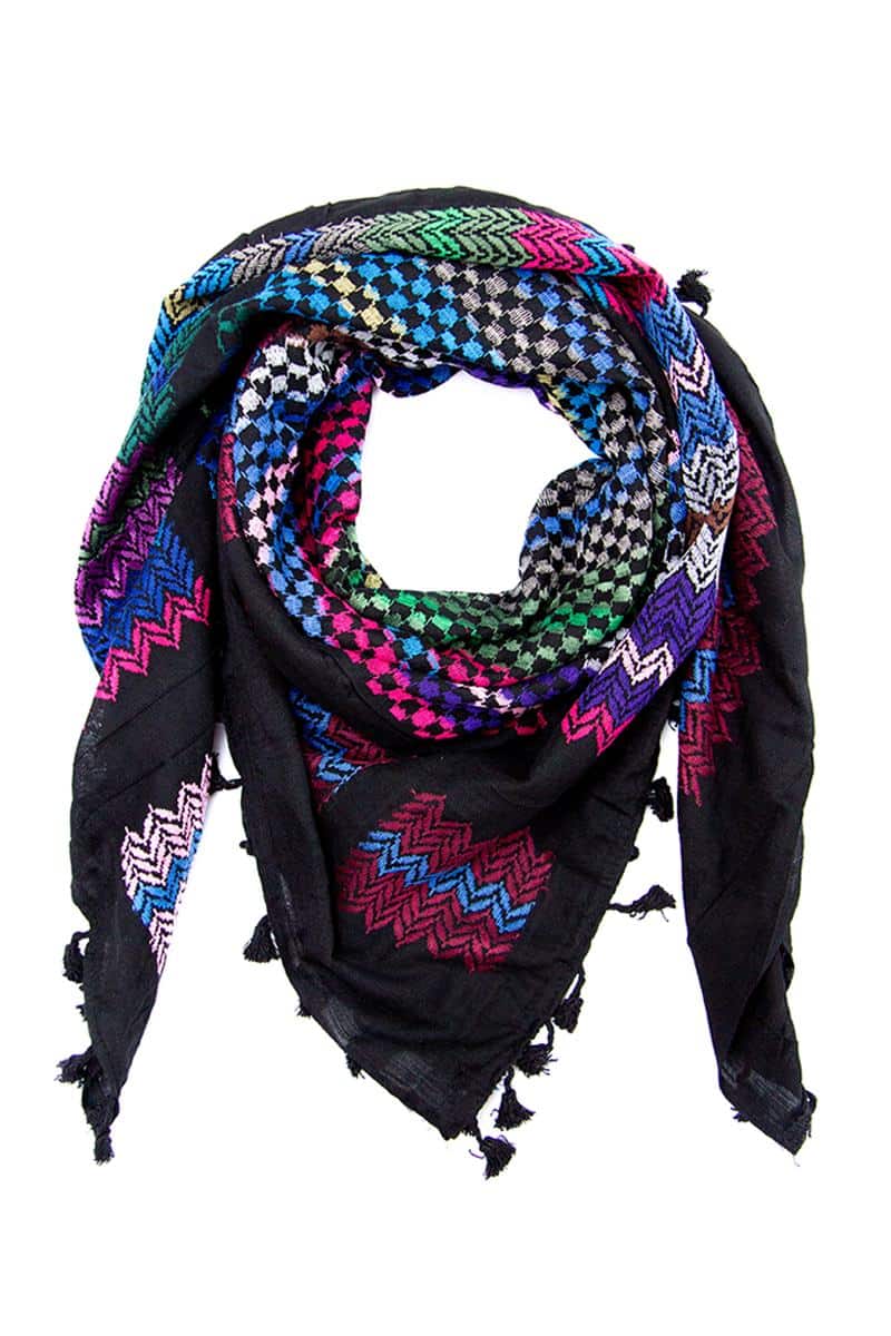 Safad Hirbawi® Kufiya is a vibrant masterpiece, adorned with a kaleidoscope of colours over a bold black background. This captivating design pays homage to the enchanting city of Safad, perched high on the Galilee mountains. Safad, the capital of the upper Galilee, carries the legacy of coexistence among diverse Christian, Muslim, and Jewish communities. Our authentic Palestinian Keffiyeh captures the essence of peace and unity that Safad represents in the hearts of Palestinians. It is a testament to the shared heritage and unwavering spirit of Palestine.