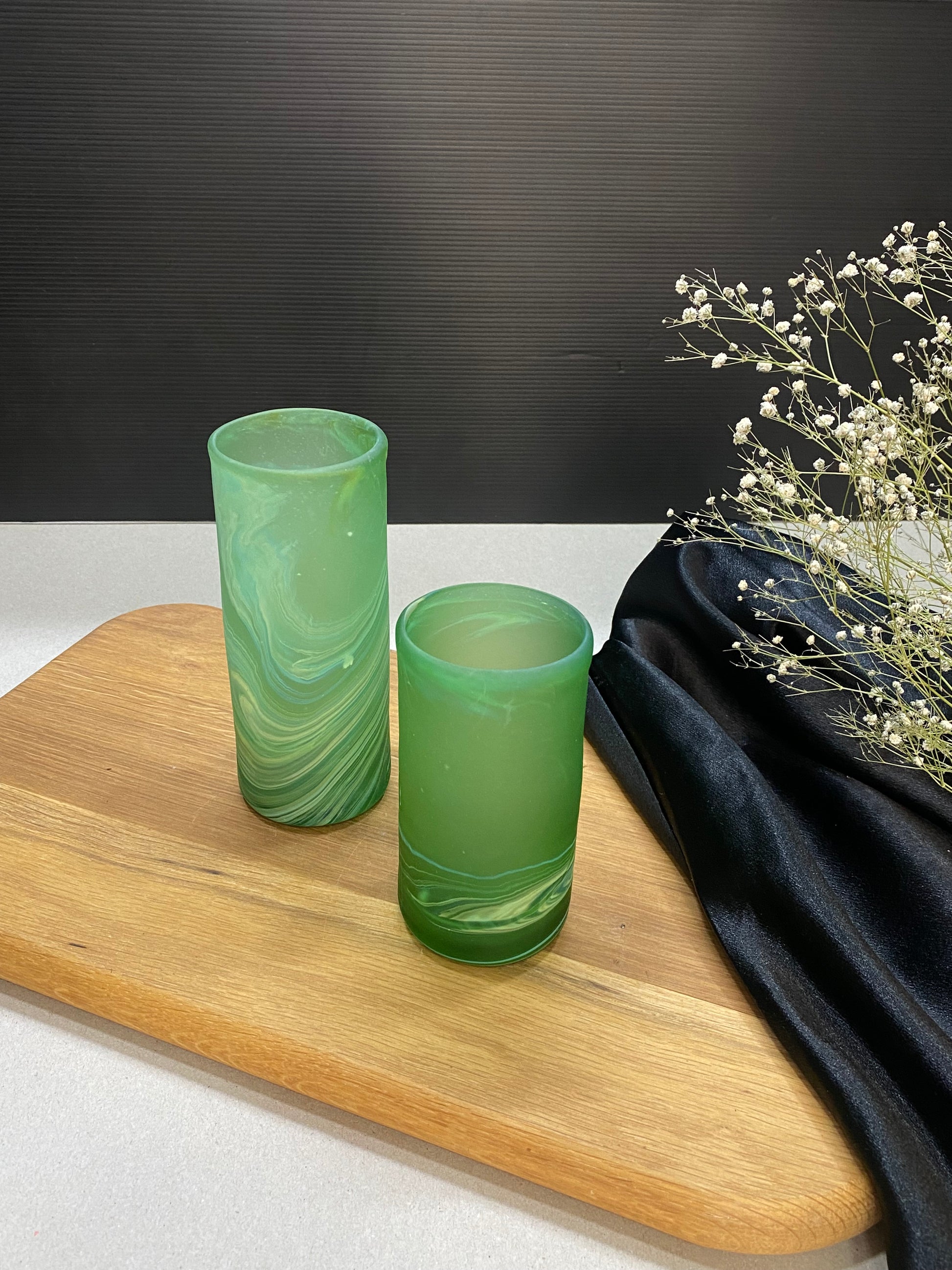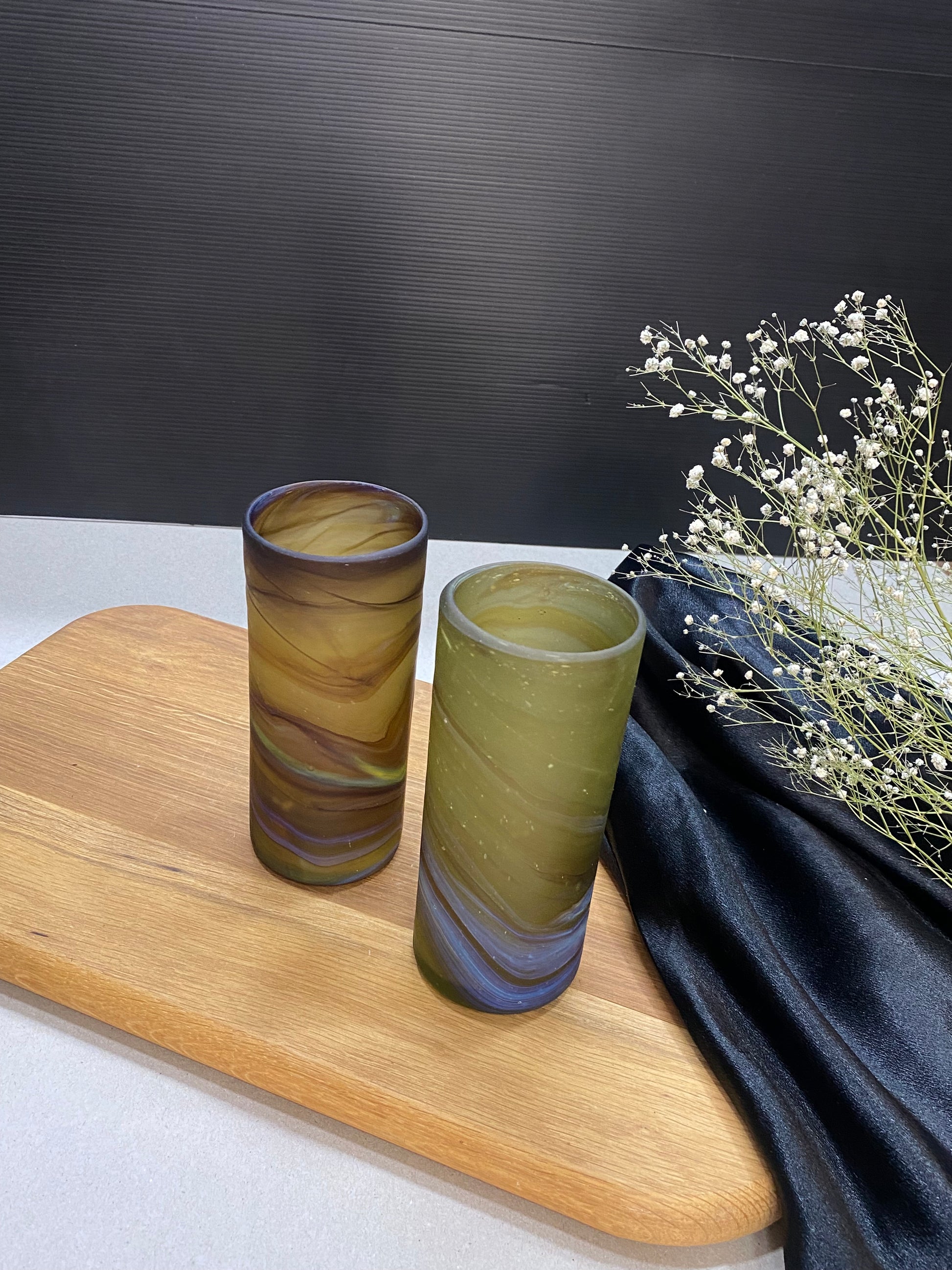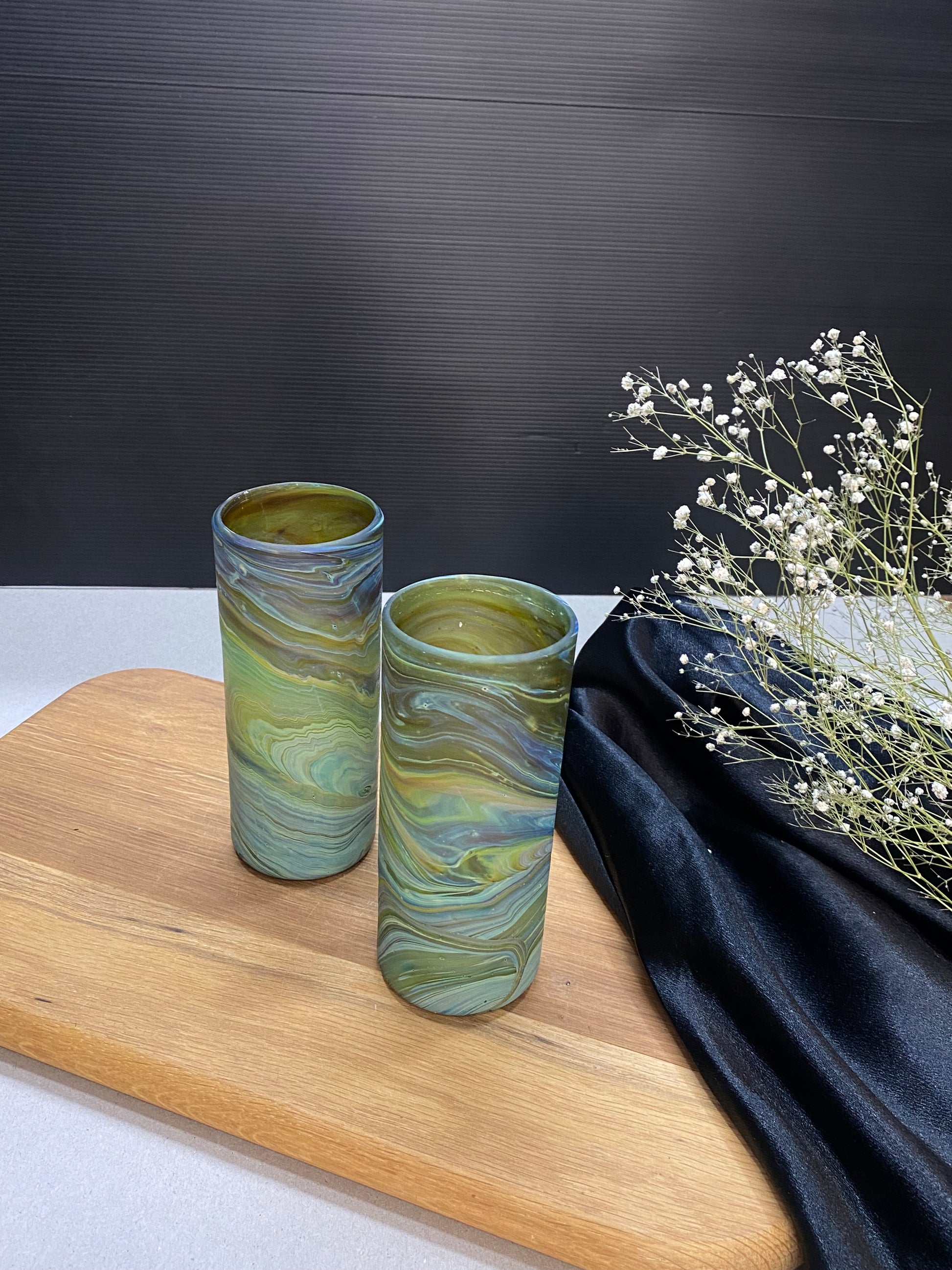 Elegant long Drinking Glass with gorgeous swirl color effects