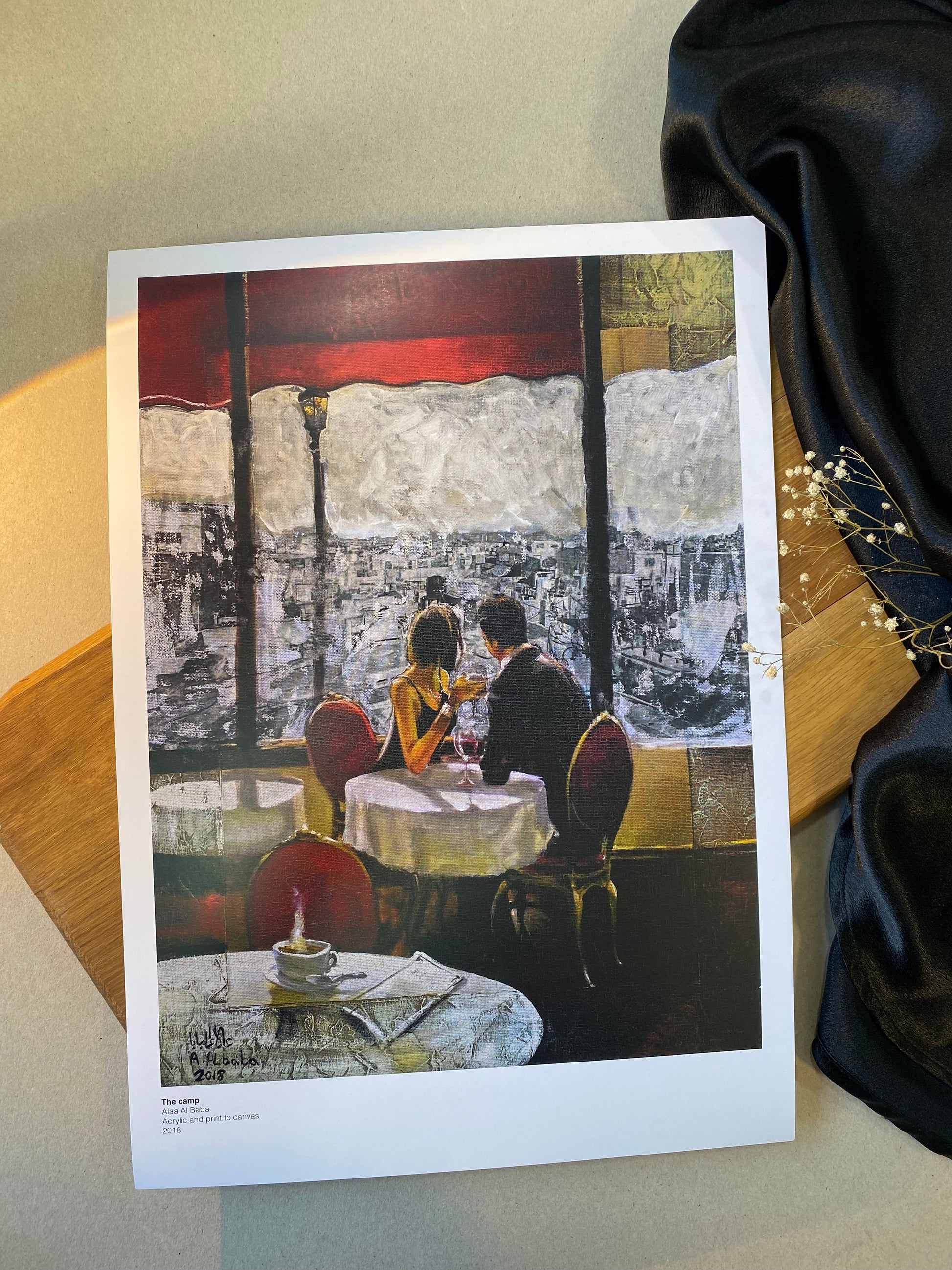 Alaa Albaba's "The Camp" collection is a profound exploration of his personal relationship with the refugee camp, particularly the Al Amari Refugee Camp, where he founded his studio. This project delves into the camp’s essence through Albaba's perspective, focusing on its physical and emotional landscape. Inspired by horizontal architecture, Albaba created 15 paintings that capture the camp’s realities and his interpretation of life within it. The collection reflects Albaba’s deep connection to the community and his commitment to highlighting the resilience, beauty, and spirit of refugee life. Through "The Camp," he offers a narrative that is both introspective and communal, emphasizing the stories, struggles, and hopes of those who live there.