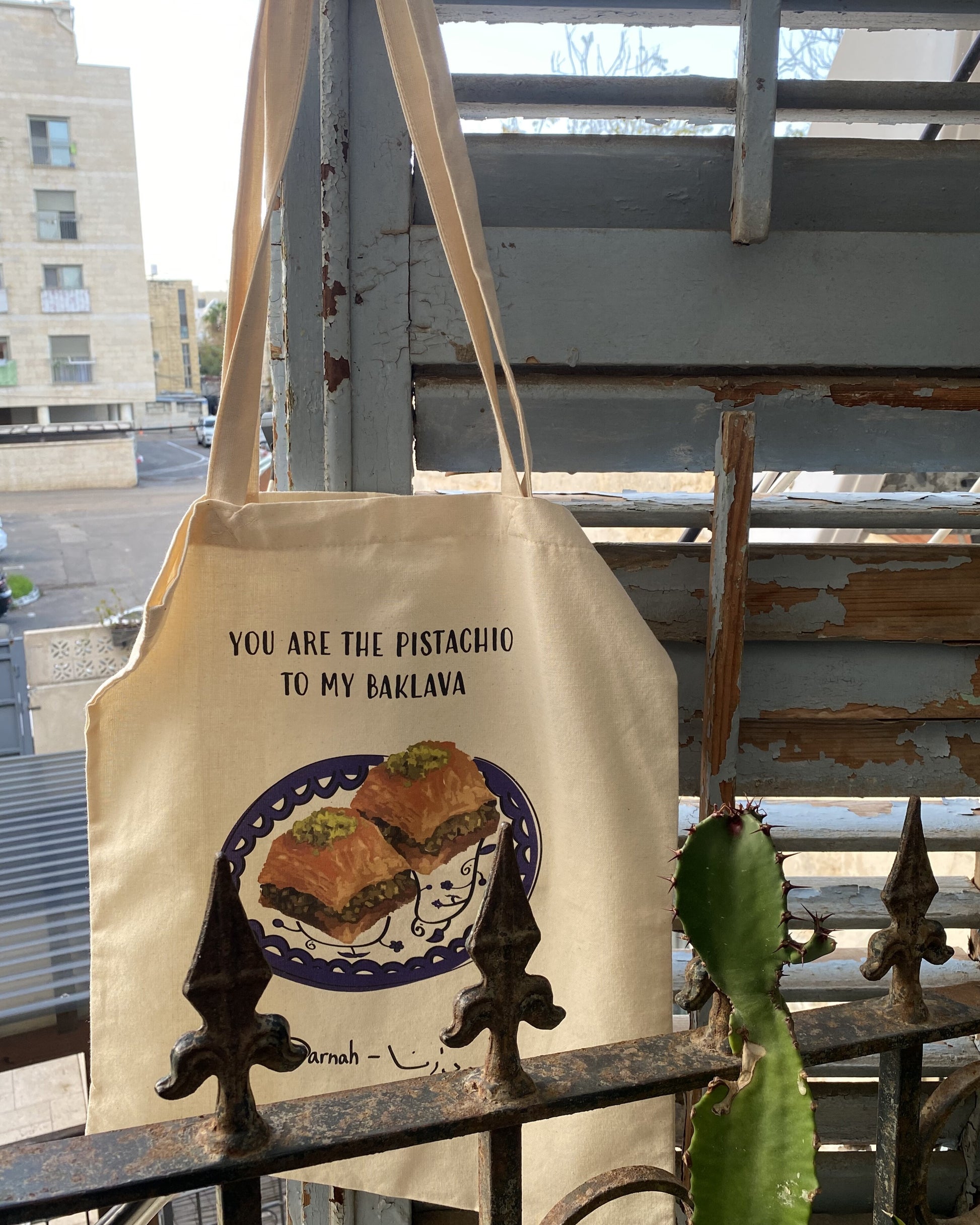 Our collection, "You are the X to my Y," beautifully captures the essence of Palestinian/Arab culture, celebrating the resilience and uniqueness of your heritage. The seven designs narrate the story of stolen traditions, be it dishes, snacks, or desserts, wrongly attributed to another culture.